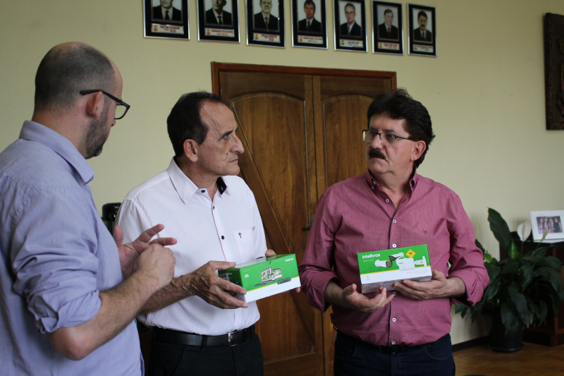 No momento foi realizada a entrega dos equipamentos para a instalação de mais uma câmera de monitoramento do "Projeto Três de Maio Cidade + Segura", que foram disponibilizados pela Prefeitura Municipal e Câmara de Vereadores.