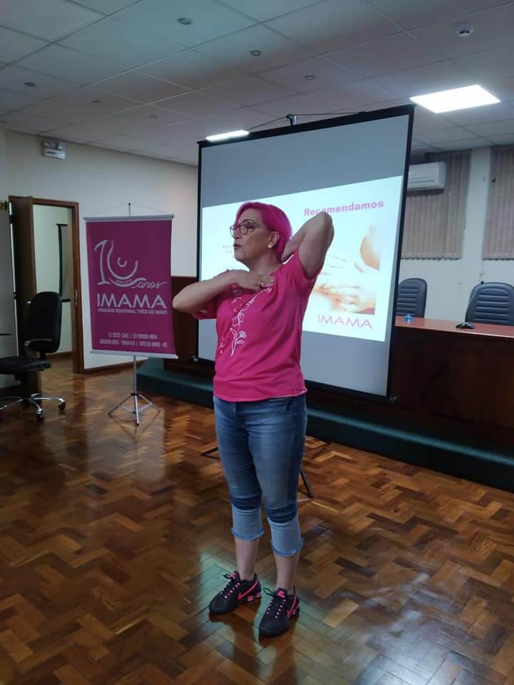 Na tarde de ontem, 6 de outubro, as voluntárias da Unidade Regional do Instituto da Mama (Imama) de Três de Maio, estiveram realizando uma palestra para as agentes de saúde do município. A atividade foi realizada na Câmara de Vereadores e contou com a participação de cerca de 20 pessoas.