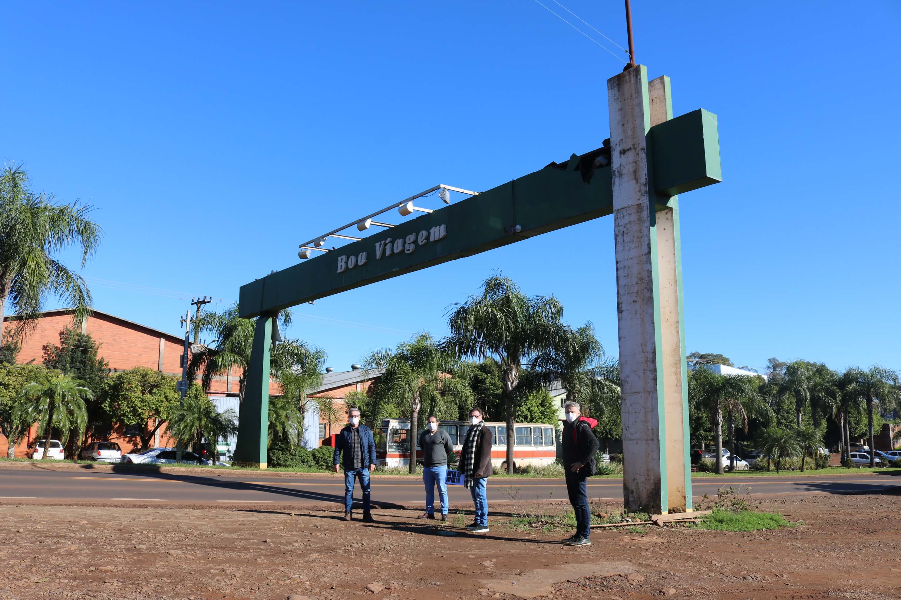 Nesta semana, uma equipe do Executivo Municipal se deslocou até o monumento para realizar os primeiros levantamentos e orçamentos da revitalização, para que, em breve, o pórtico esteja com novo sistema de iluminação e demais melhorias.