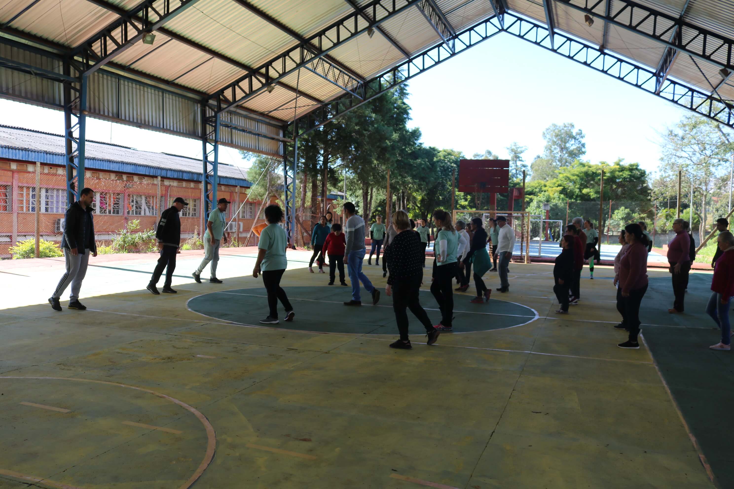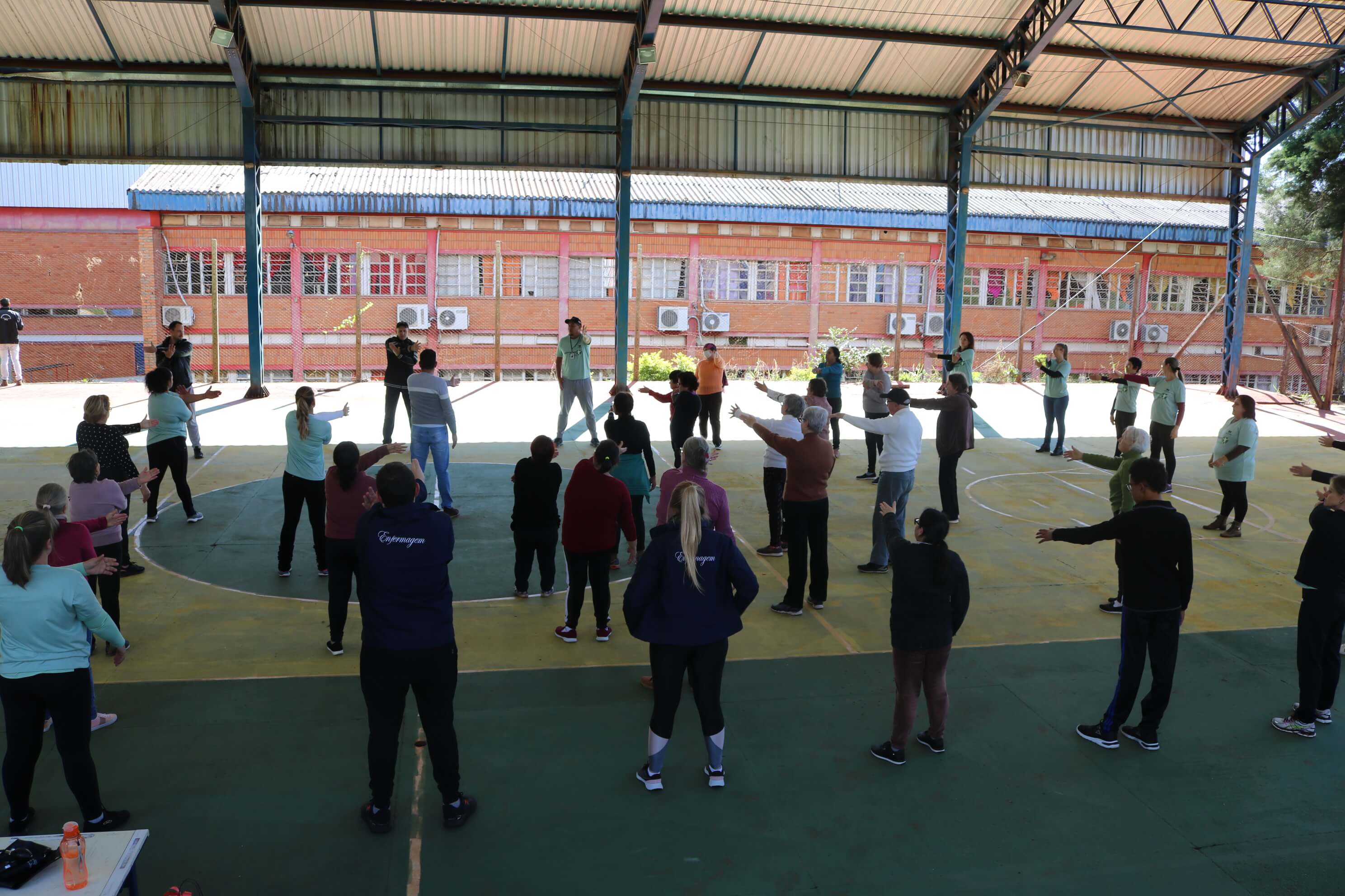 As atividades ocorreram na quadra de esportes da Escola Municipal Cívico-Militar Caminhos Inovadores e envolveram a comunidade atendida pela unidade de Estratégia de Saúde da Família (ESF) Viva Feliz.