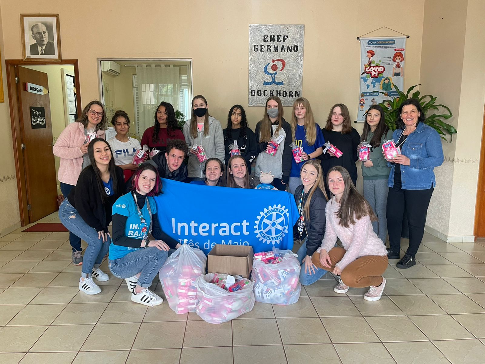 Na tarde de ontem, 14 de julho, o Interact Club de Três de Maio realizou a entrega de mais de 4.400 absorventes para duas instituições de ensino do município, a Escola Municipal de Ensino Fundamental Germano Dockhorn e a Escola Municipal Cívico-Militar Caminhos Inovadores.