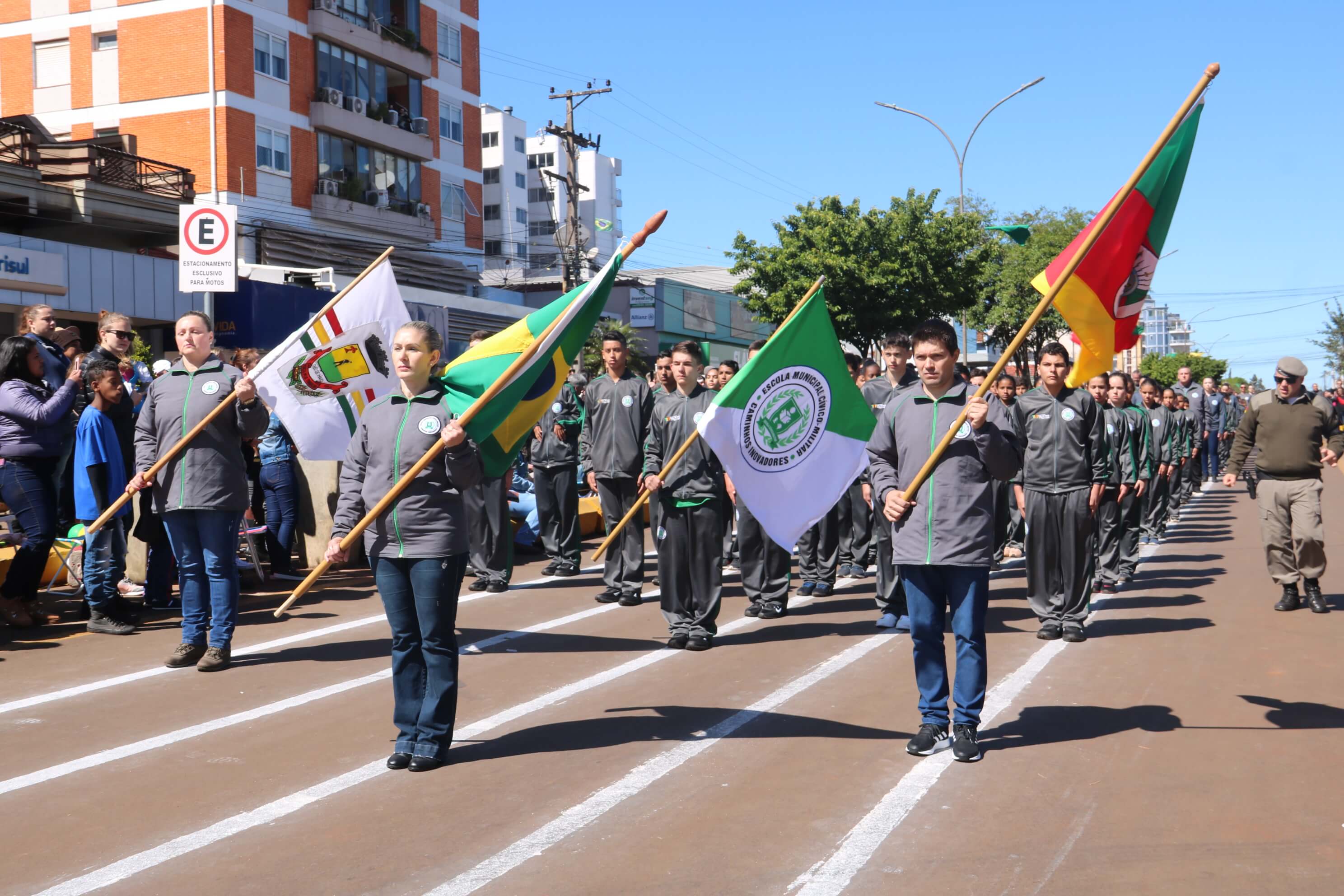 A solenidade contou com o hasteamento das bandeiras, pronunciamentos das autoridades e homenagem às pessoas centenárias do município. Na sequência, o público presente prestigiou a apresentação da Banda de Música do 1º Batalhão de Comunicações e o desfile das escolas e entidades de Três de Maio.
