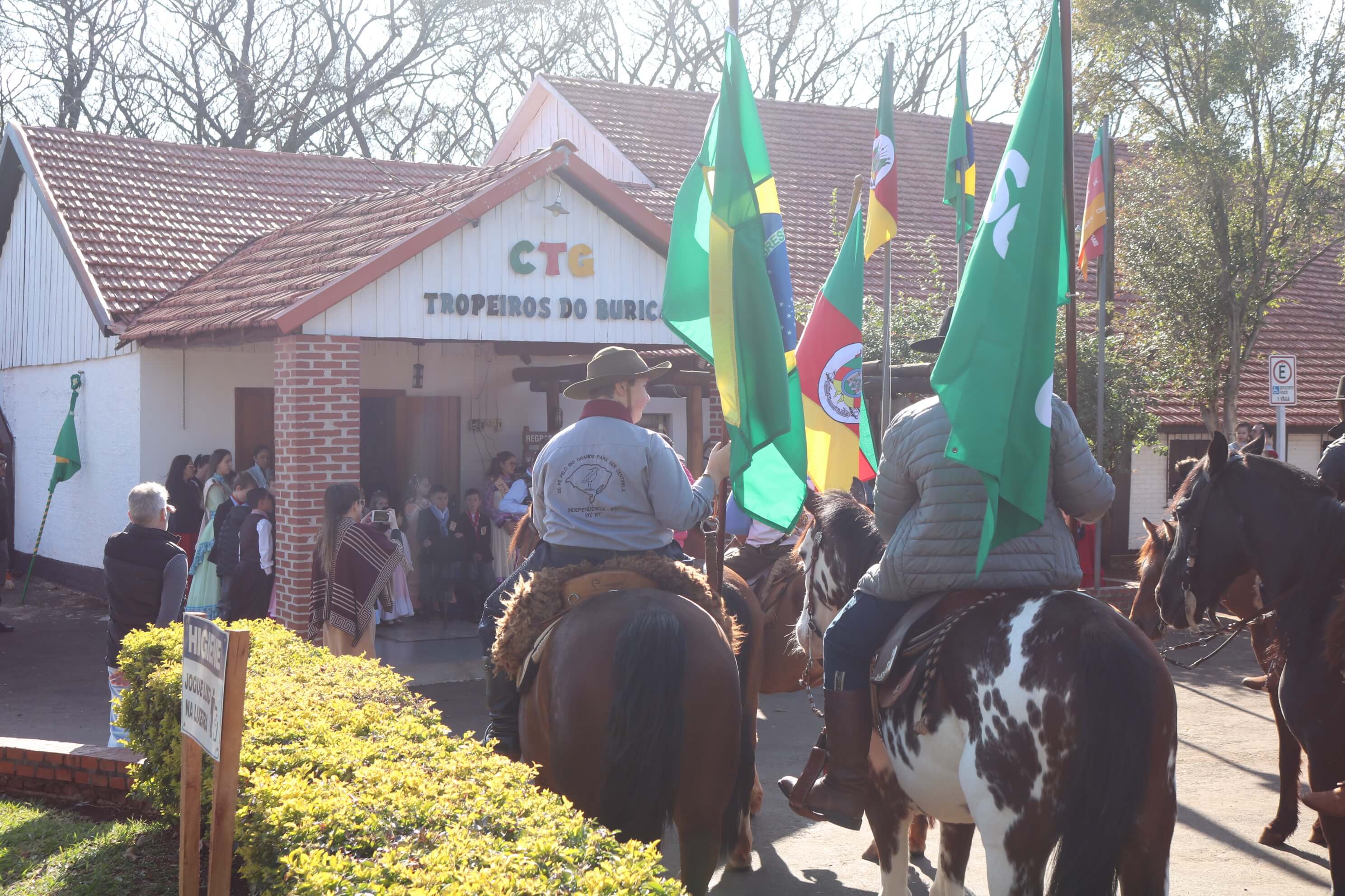 Na manhã de ontem, dia 15 de setembro, ocorreu a abertura da Semana Farroupilha no CTG Tropeiros do Buricá, com presença de autoridades locais e Patronagens, Hasteamento das Bandeiras, apresentações tradicionalistas e logo após entrega da Chama Crioula para grupo de cavalarianos.