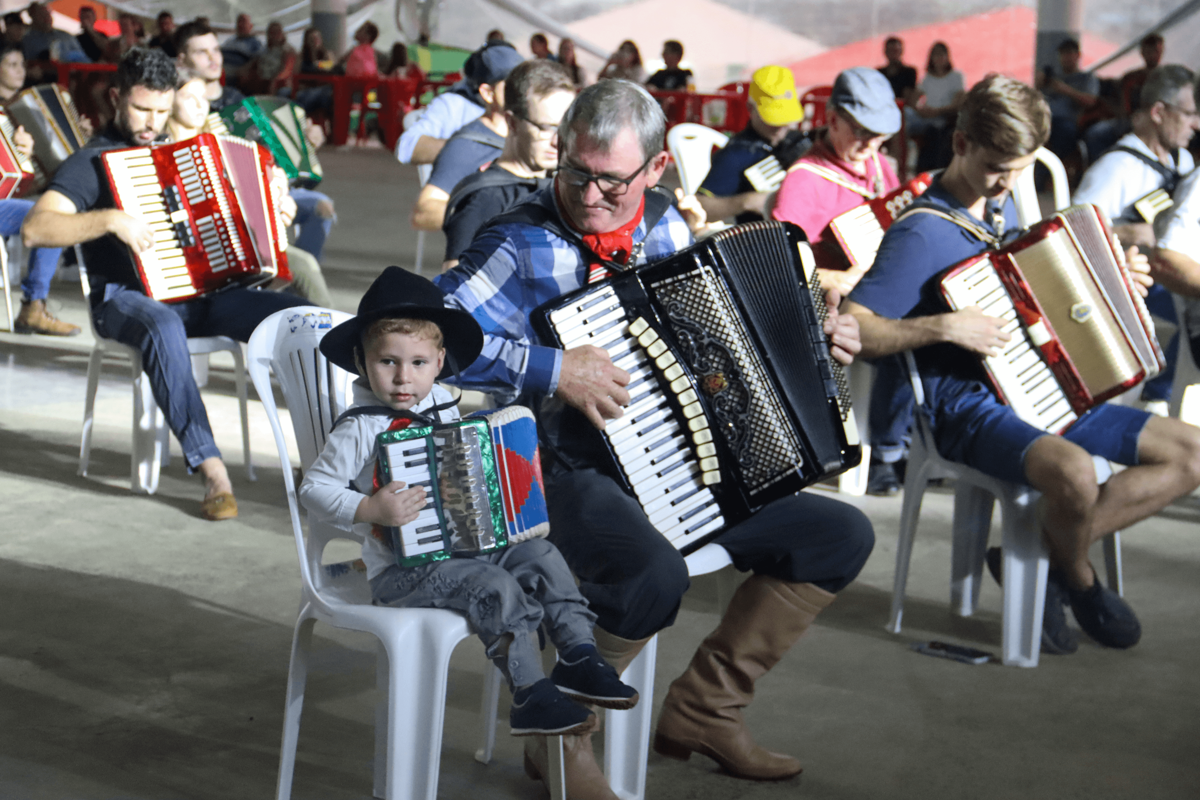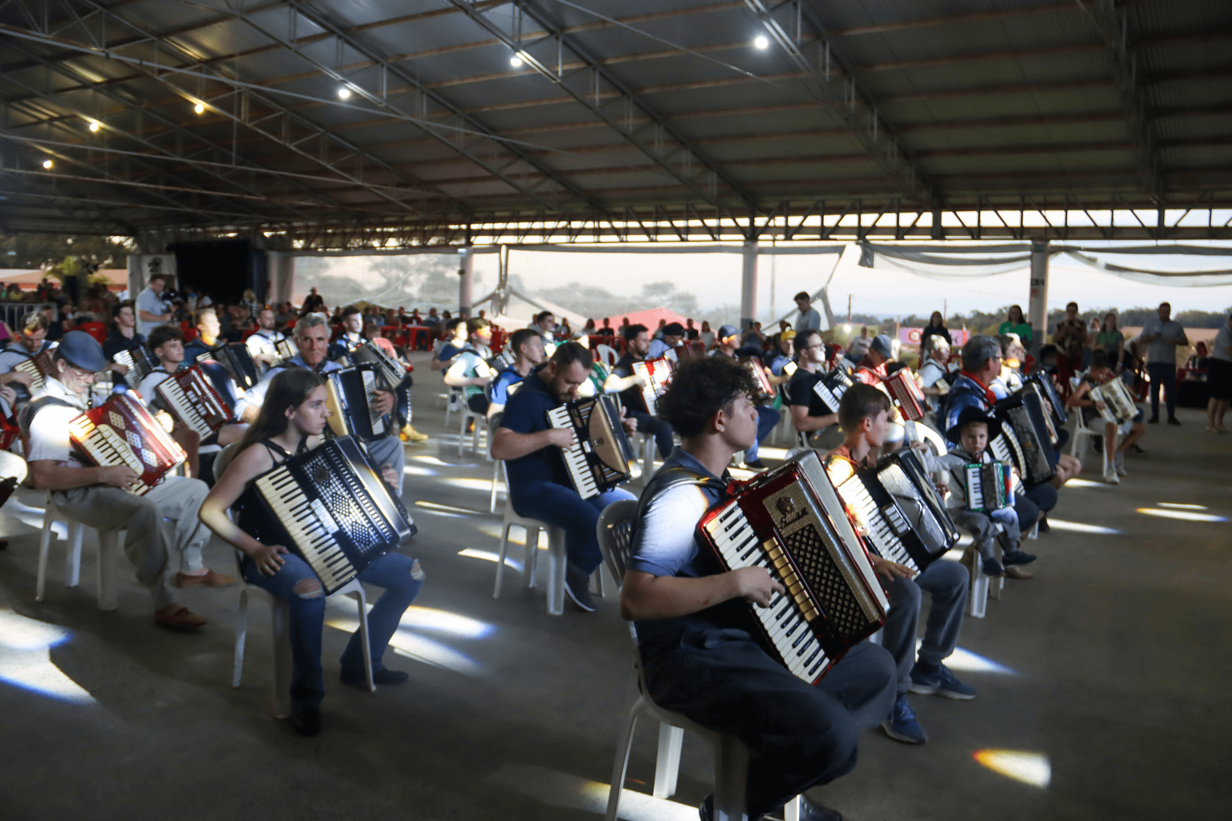 No total 50 gaiteiros participaram da apresentação, incluindo avôs, pais e filhos, tocando 5 musicas pré-definidas pela Coordenação de Eventos da Expo Feira 2024.