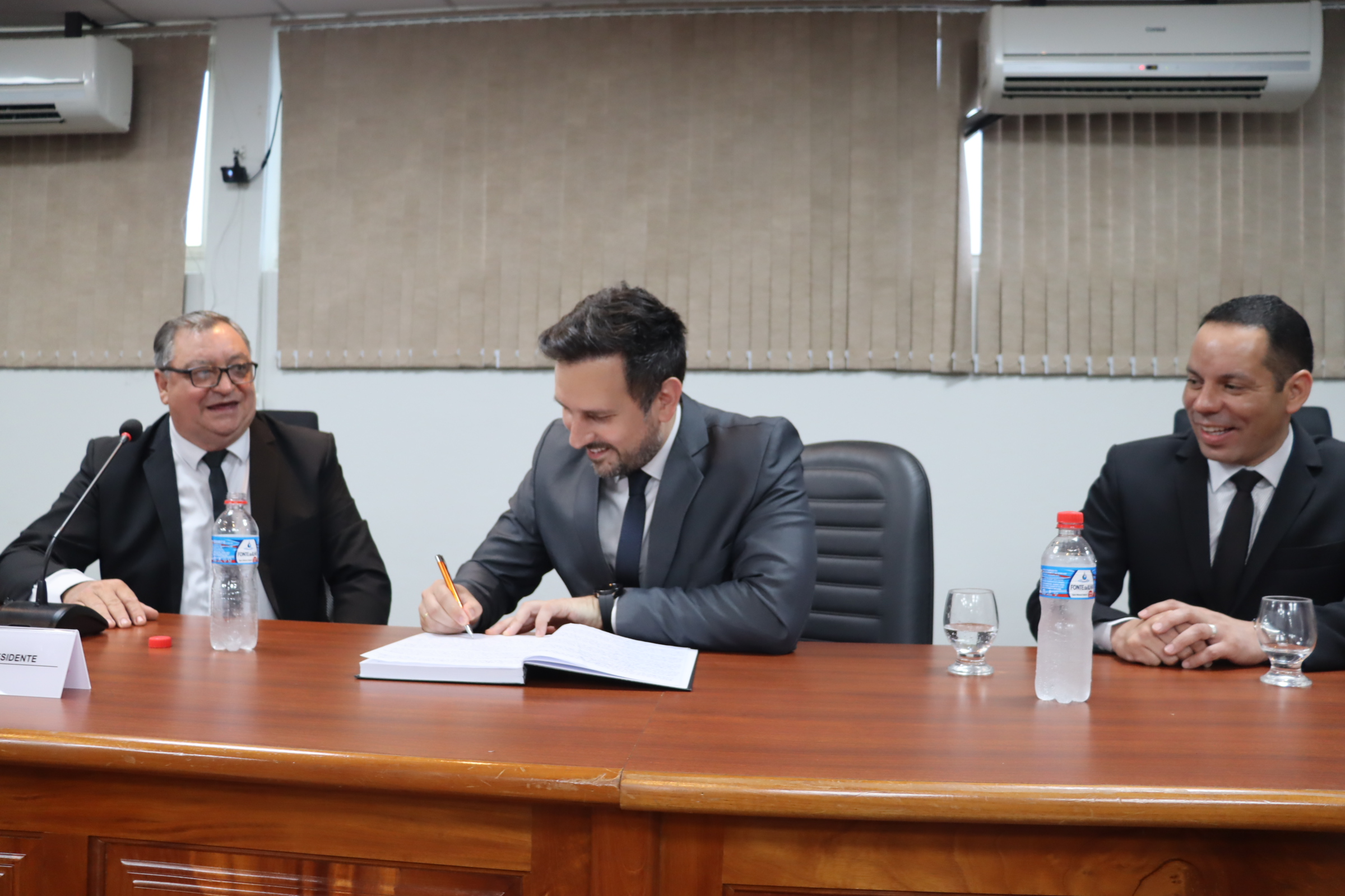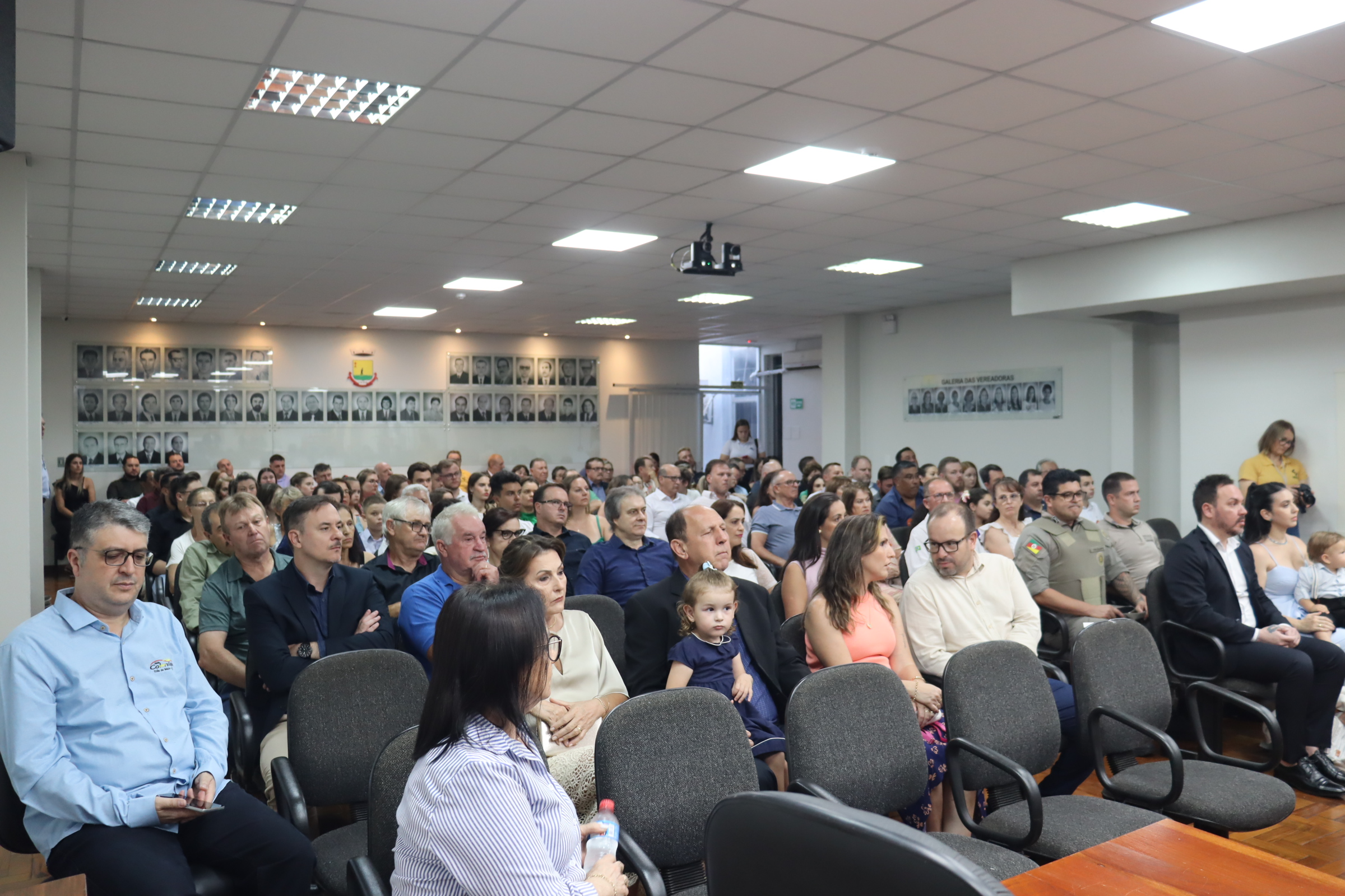 Também tomaram posse o prefeito Marcos Vinícius Benedetti Corso e o vice-prefeito Josias Correa, ambos reeleitos para um segundo mandato.