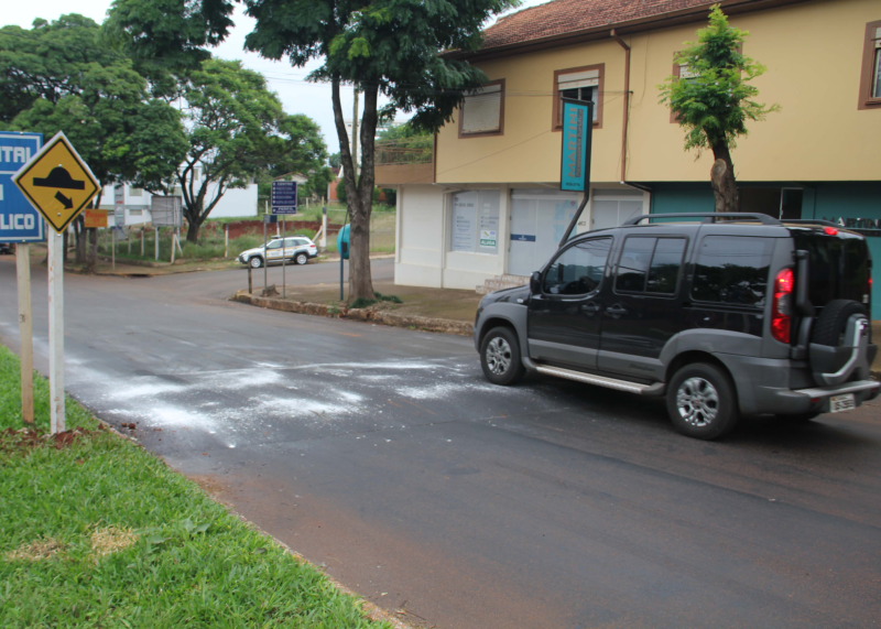 Na tarde de sábado, 14, a Secretaria de Obras realizou a instalação das placas de sinalização temporárias nas novas lombadas que foram instaladas nas duas vias da avenida Senador Alberto Pasqualini, avenida Santa Rosa e na rua Consolata.