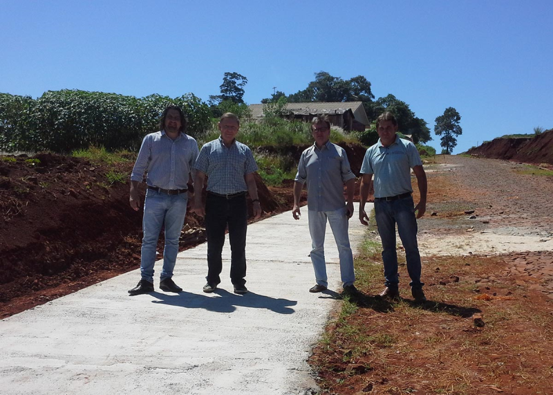 Na manhã de hoje, 19, o prefeito municipal, Olívio José Casali; o vereador Mauri Mella; o chefe de Gabinete, Leandro Maehler e o secretário interino de Obras, Jair Taborda, estiveram acompanhando as melhorias que estão sendo realizadas na rua Monsenhor Testani.