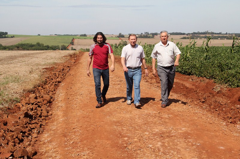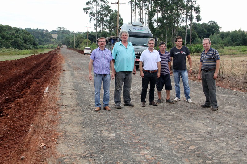 Nesta semana, o prefeito Olívio José Casali esteve visitando obras em estradas do distrito de Consolata, em Três de Maio. Na segunda-feira, 7 de abril, o prefeito, juntamente com o presidente da Câmara de Vereadores, Mauri Mella, e o vereador Luiz Lena, acompanharam as obras no acostamento do novo calçamento, no trecho que dá acesso ao distrito pela BR-472. Foram destinadas no local aproximadamente 65 cargas de cascalho, usadas para ensaibramento e posterior compactação, a fim de proteger o meio-fio e oferecer mais segurança aos motoristas e pedestres. O novo trecho com calçamento possui 1,2 km e é uma obra executada com recursos do Ministério do Turismo, orçada em pouco mais de R$ 266 mil.