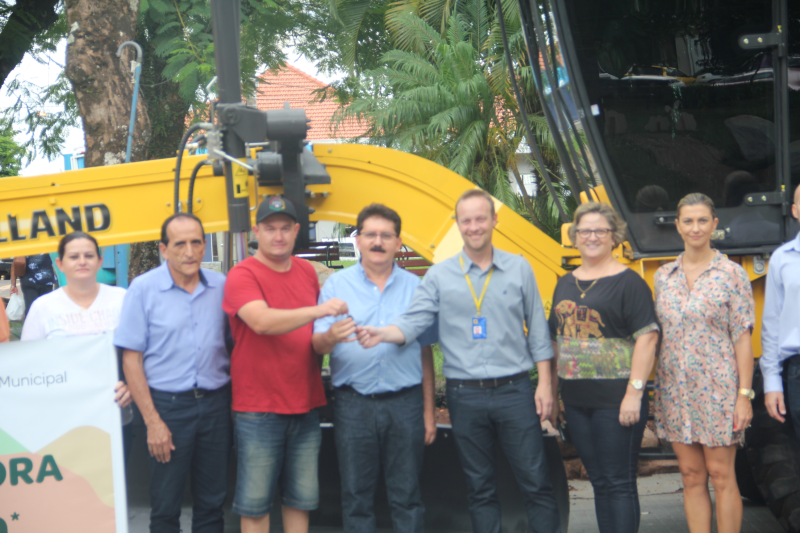 Depois de 28 anos sem adquirir maquinário com recursos próprios, Três de Maio começa a renovar sua frota. O primeiro veículo adquirido é uma motoniveladora New Holland RG 170.B VHP. A entrega oficial do equipamento foi realizada nesta segunda-feira (26), com a presença do prefeito, Altair Copatti; vice-prefeita, Eliane Fischer; secretário municipal de Obras, Cláudio Siqueira e vereadores.