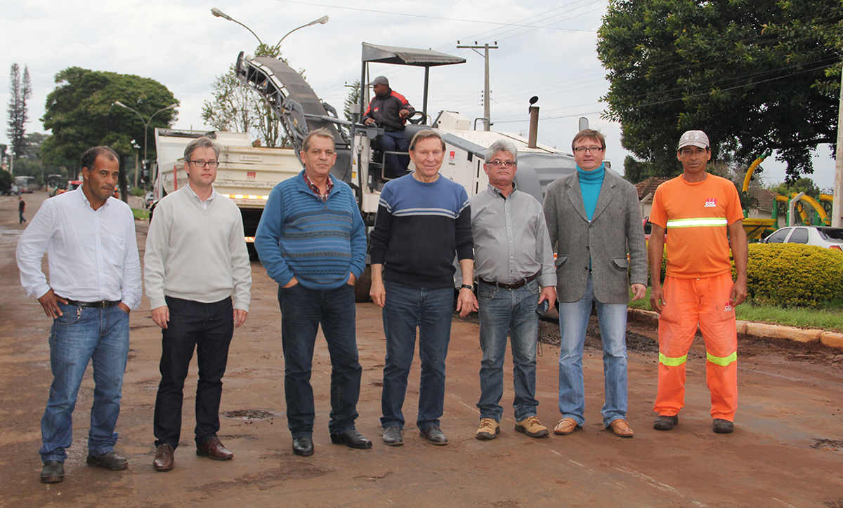 Com uma trégua das chuvas, ontem à tarde, 24, iniciaram as obras de restauração e recuperação da pavimentação asfáltica de Três de Maio. O prefeito municipal, Olívio José Casali; o secretário de Planejamento, Leonardo Casali; o chefe de Gabinete, Leandro Maehler (Pato Roberto), o coordenador de Obras, Jonatan Jahn e o coordenador de Trânsito, Jair Taborda, estiveram acompanhando as atividades. As obras iniciaram na avenida Santa Rosa, no entroncamento com a rua Consolata, no sentido bairro/centro.