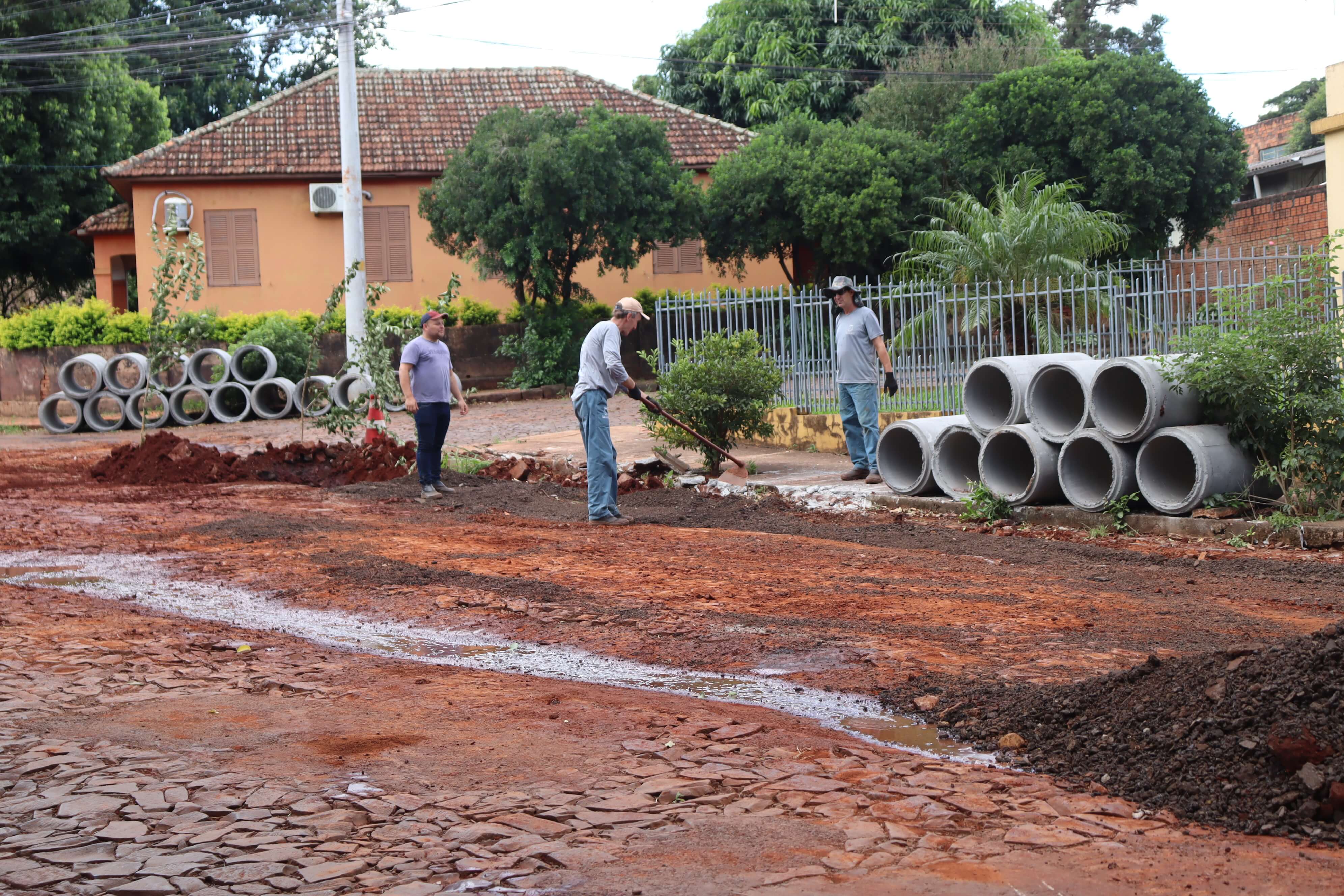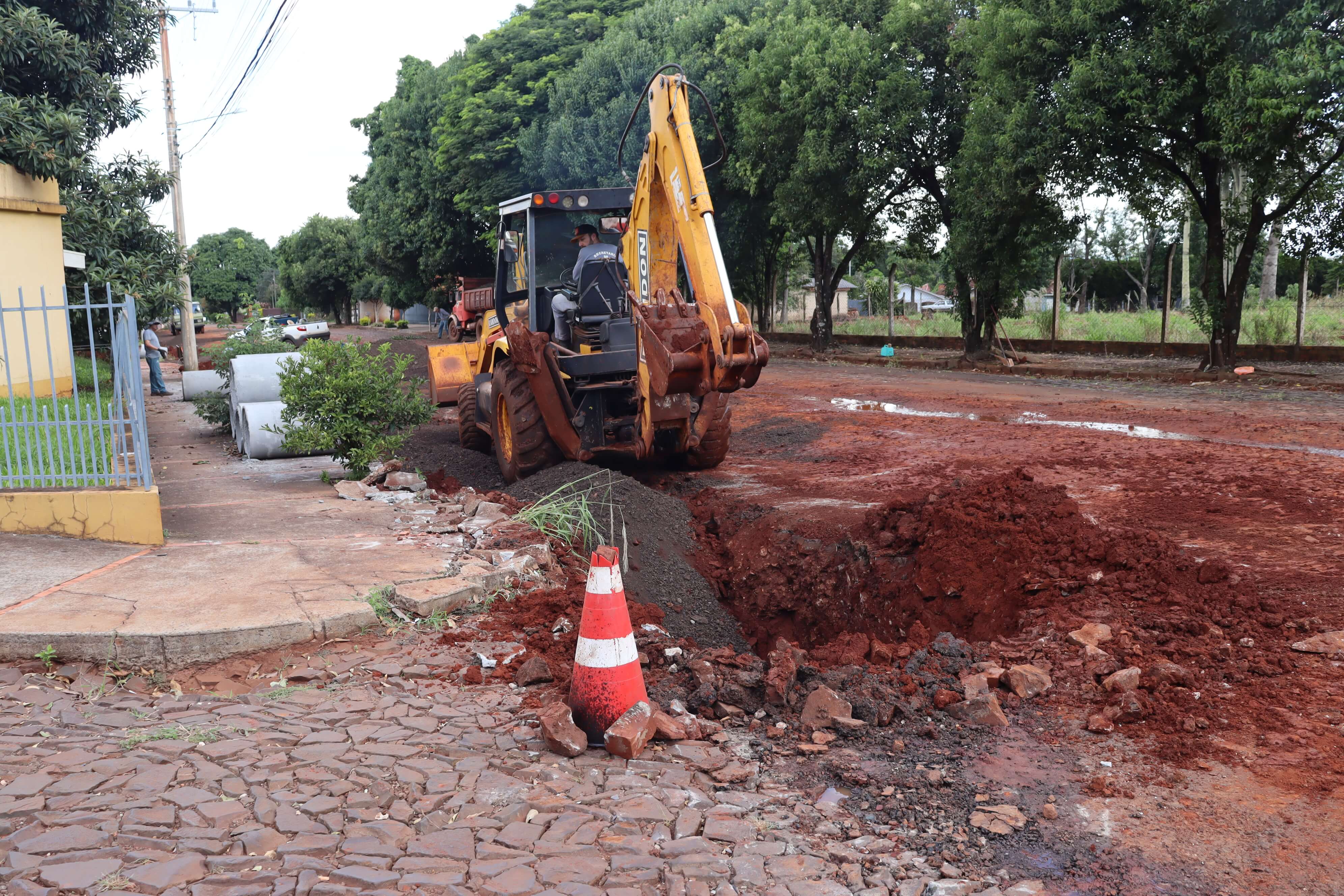 A Secretaria de Obras solicita aos moradores do bairro e aos que trafegam na área que redobrem a atenção para evitar acidentes, pois há operários e máquinas no local.