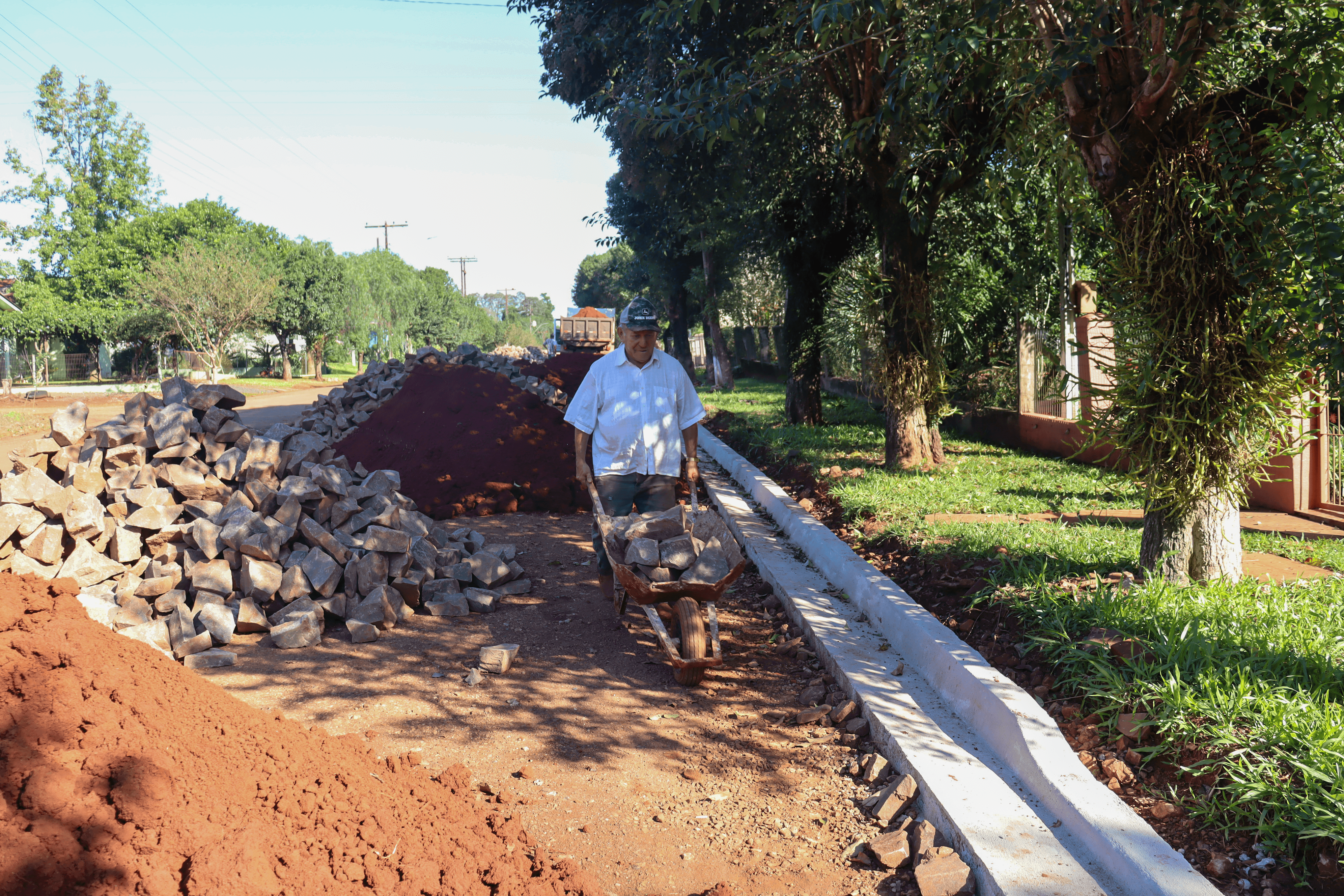 O Governo Municipal de Três de Maio, através da Secretaria de Obras, está realizando as obras de calçamento em Progresso, no trecho da Av. Três de Maio, que antes pertencia a VRS-338.