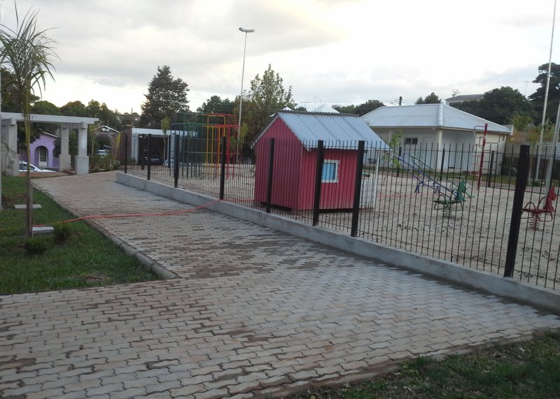 A obra compreende uma praça recreativa e de lazer para a comunidade