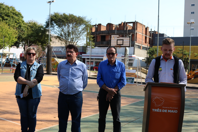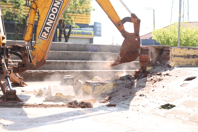 Na tarde desta sexta-feira, 16 de agosto, um importante momento para a comunidade tresmaiense foi realizado na Praça Henrique Becker Filho. O Governo Municipal através da Secretaria de Planejamento realizou um ato simbólico para marcar o início das obras de revitalização da praça com o ronco das máquinas e demolição da pista de skate.