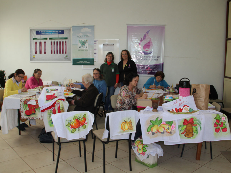 Nesta semana, entre os dias 12 e 16 de setembro, a Secretaria Municipal de Políticas da Mulher promoveu um curso de Pintura em Tecido, em parceria com o Serviço Nacional de Aprendizagem Rural (Senar). A atividade ocorreu na Secretaria Municipal de Políticas da Mulher, foi ministrada pela instrutora do Senar, Neusa Rosane Markiewicz e teve a participação de dez pessoas.