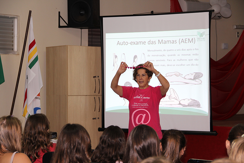 A atividade foi ministrada pela enfermeira instrutora do Senar, Cássia de Oliveira, que explicou sobre o sistema reprodutor feminino, métodos contraceptivos, doenças sexualmente transmissíveis, prevenção de câncer de colo e de mama, entre outros. Após as considerações de Cássia, a supervisora regional do IMAMA, Elizabeth Caraffa e a secretária administrativa do IMAMA, Taisa Valdameri, explanaram mais sobre os sintomas, fatores de risco, autoexame e tratamento do câncer de mama.