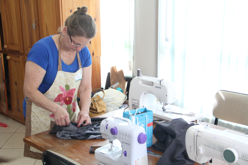 A participante do curso, Felipa, destacou que não tinha conhecimento algum sobre costura e que agora está muito animada para realizar mais capacitações, segundo ela, a máquina de costuras que tinha em casa nunca havia sido usada e agora com o conhecimento adquirido, vai praticar em casa e fazer roupas para a família.