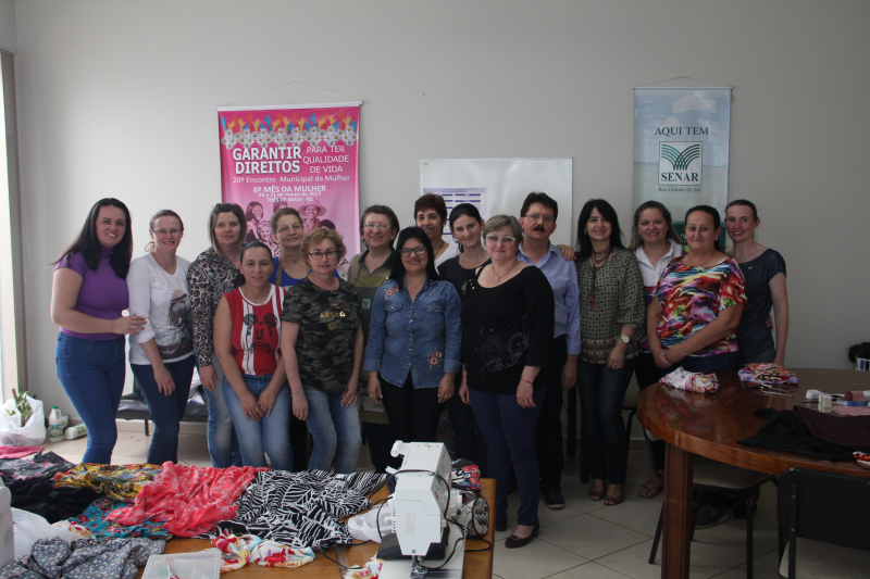 Nos últimos dias, a Secretaria Municipal de Políticas da Mulher promoveu um curso de Corte e Costura, em parceria com o Serviço Nacional de Aprendizagem Rural (Senar) e o Sindicato Rural.