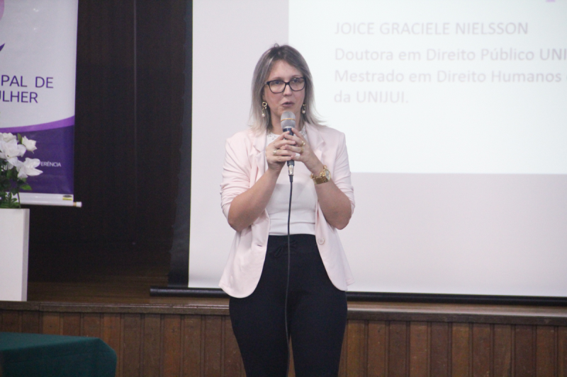A doutora Joice Nielsson, explicou em sua fala, que 75% das mulheres já sofreram violência dentro de casa, e por isso que é importante debater o assunto, segundo ela, as crianças que vivem em lares violentos em sua maioria irão reproduzir na sociedade comportamentos refletivos a essa violência, seja como agressor ou como vítima de agressão, por isso a discussão do assunto é um dever da sociedade. Joice ainda explica que a violência contra as mulheres sempre existiu, “até alguns anos atrás, a violência e a falta de direitos das mulheres era socialmente autorizada, as mulheres viviam em um modelo de sociedade patriarcal onde o homem era ‘dono' de tudo o que estava abaixo dele, inclusive das mulheres e filhos. A violência sempre existiu, o que não existia era a possibilidade das mulheres saírem desta situação, o que ocorreu após a sanção da Lei Maria da Penha, que definiu o que é violência, seja ela moral, psicológica, patrimonial, sexual ou física”, destacou.