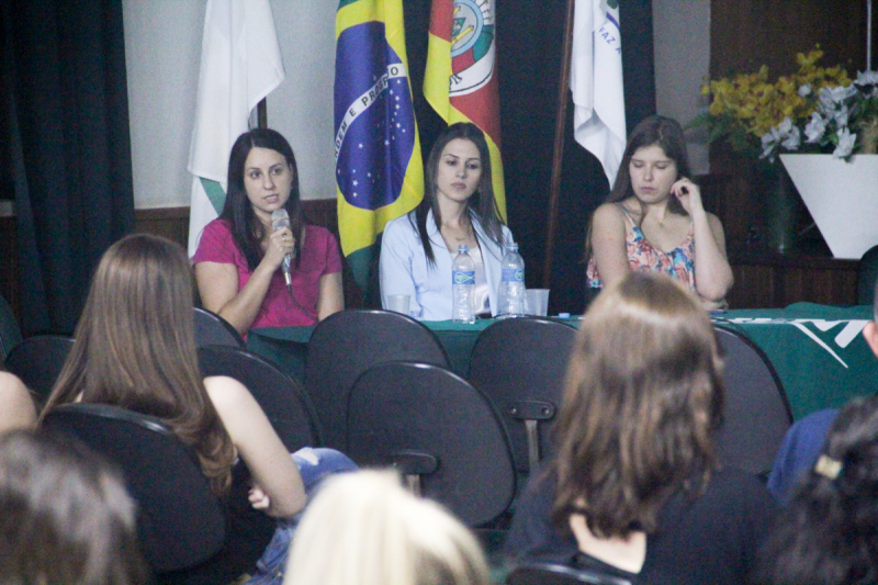 Alunos da Setrem e comunidade puderam acompanhar três palestras que debateram a temática apresentada. As convidadas foram, a Doutora em Direito, Joice Graciele Nielsson, professora da Unijuí, e atua nos temas: Gênero, Feminismo, Constituição, Diversidade, Teoria da Justiça e Direitos Humanos. A Mestre em Psicologia, Cris Aline Krindges, professora do Curso de Psicologia da Setrem, atuando principalmente nos temas: avaliação psicológica, intervenções clínicas e psicossociais, psicologia jurídica, violação de direitos humanos, abuso sexual infanto-juvenil e mulheres em situação de violência. A terceira convidada da noite, é a Mestre em Ciências Jurídicas, Márcia Herbertz, Secretária de Políticas da Mulher de Três de Maio.