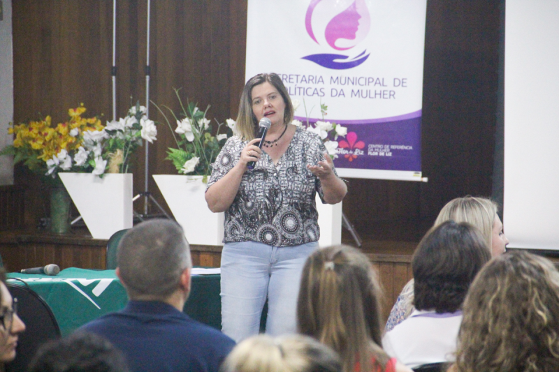A última fala da noite, foi realizada pela Secretária de Políticas da Mulher de Três de Maio, Márcia Herbertz, que falou aos presentes sobre a Rede de Proteção da Mulher no município e as políticas públicas implementadas na defesa dos direitos das mulheres. Márcia explicou como as mulheres tem acesso aos atendimentos do Centro de Referência da Mulher Flor de Liz, mantido pela Prefeitura de Três de Maio, que presta serviço de Assistência Social, Psicologia e suporte Jurídico as mulheres vítimas de violência. “A Rede de Proteção a Mulher de Três de Maio é de extrema importância para o desenvolvimento de ações de proteção as mulheres, em resultado ao trabalho conjunto da rede, com o desenvolvimento de políticas públicas por parte do Município, estamos há cinco anos sem assassinatos de mulheres em decorrência de violência doméstica”, finaliza.