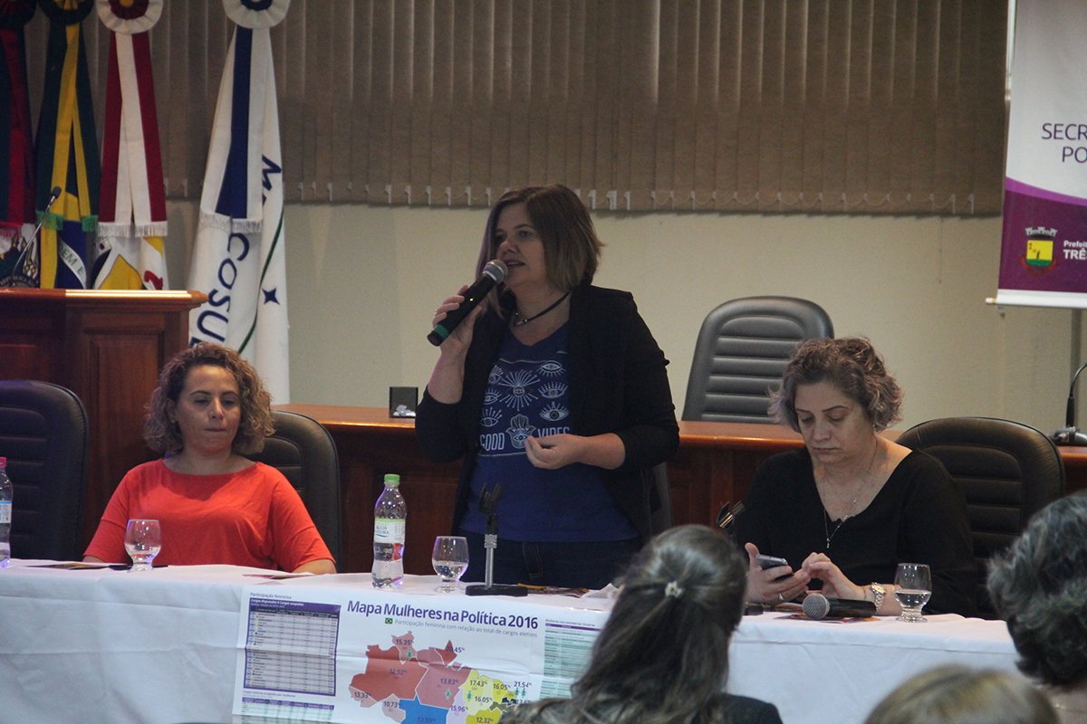 Durante a tarde, os participantes puderam acompanhar uma palestra com o tema “Desafios da Política para Mulheres e o Trabalho em Rede”, ministrada pela psicóloga Cris Aline Krindges, da SETREM.