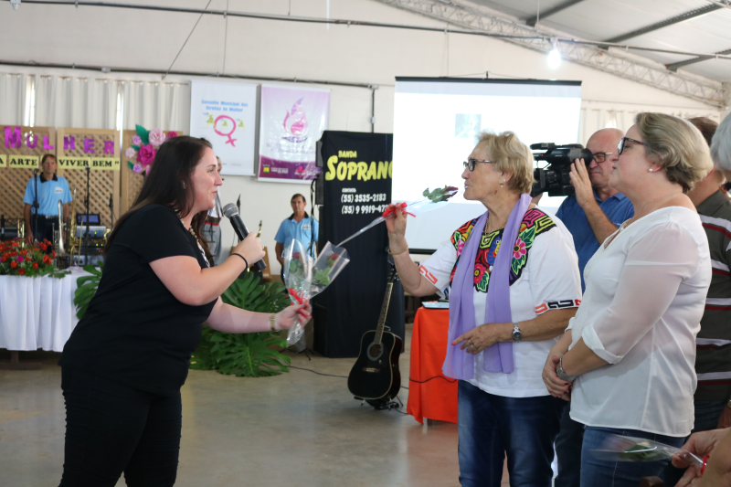 A programação seguiu com a apresentação do grupo de danças do Serviço de Convivência e Fortalecimento de Vínculos da Secretaria de Desenvolvimento Social, o grupo Anitas na Melhor Idade. Logo após, a palestrante Patrícia Haunss assumiu os trabalhos animando o público presente com uma palestra interativa com entrega de rosas, dança e muita animação.