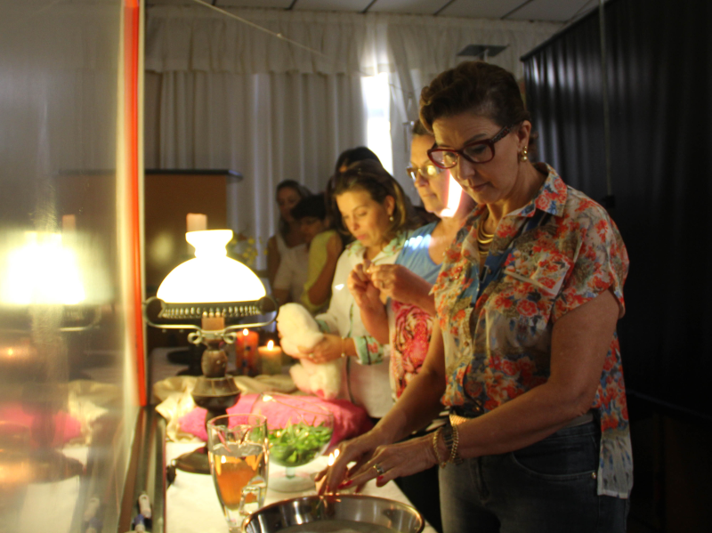 Durante a atividade, as participantes puderam desfrutar de um momento de relaxamento e de novas experiências explorando os cinco sentidos, realizado pela Ânima Clínica de Psicologia.