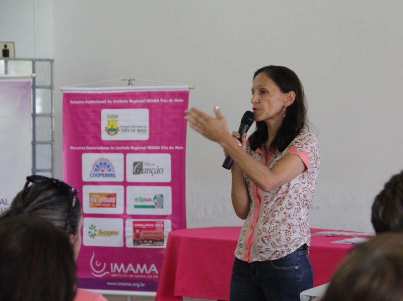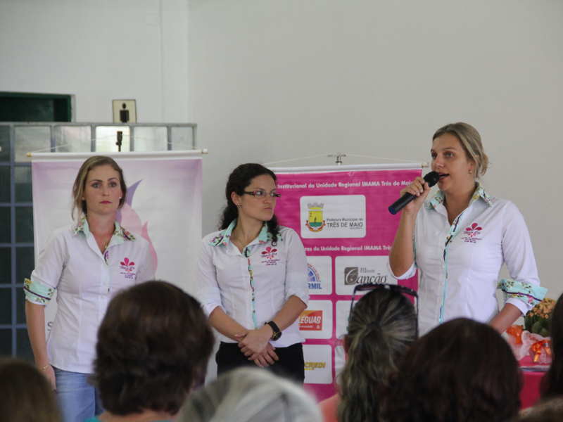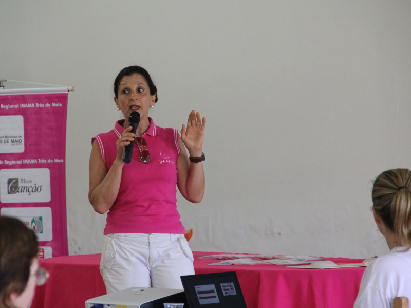 As voluntárias do IMAMA, Nara Wächter e Taísa Valdameri, apresentaram a situação do câncer de mama no Brasil e no Rio Grande do Sul, alertando às mulheres sobre os perigos de um diagnóstico tardio, a importância do autoexame da mama, além de anualmente fazer o preventivo e a mamografia. “Para cada 100 mulheres, há três homens com câncer de mama, por isso é importante que todos, indiferente do sexo, façam os exames anualmente”, destaca Nara.