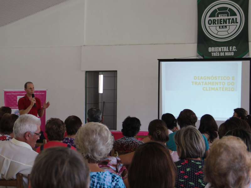 Na sequência, o dr. Danilo comentou sobre como fazer o diagnóstico e as formas de tratamento da menopausa e explanou sobre o que acontece com a mulher e com seu corpo antes, durante e após este período.