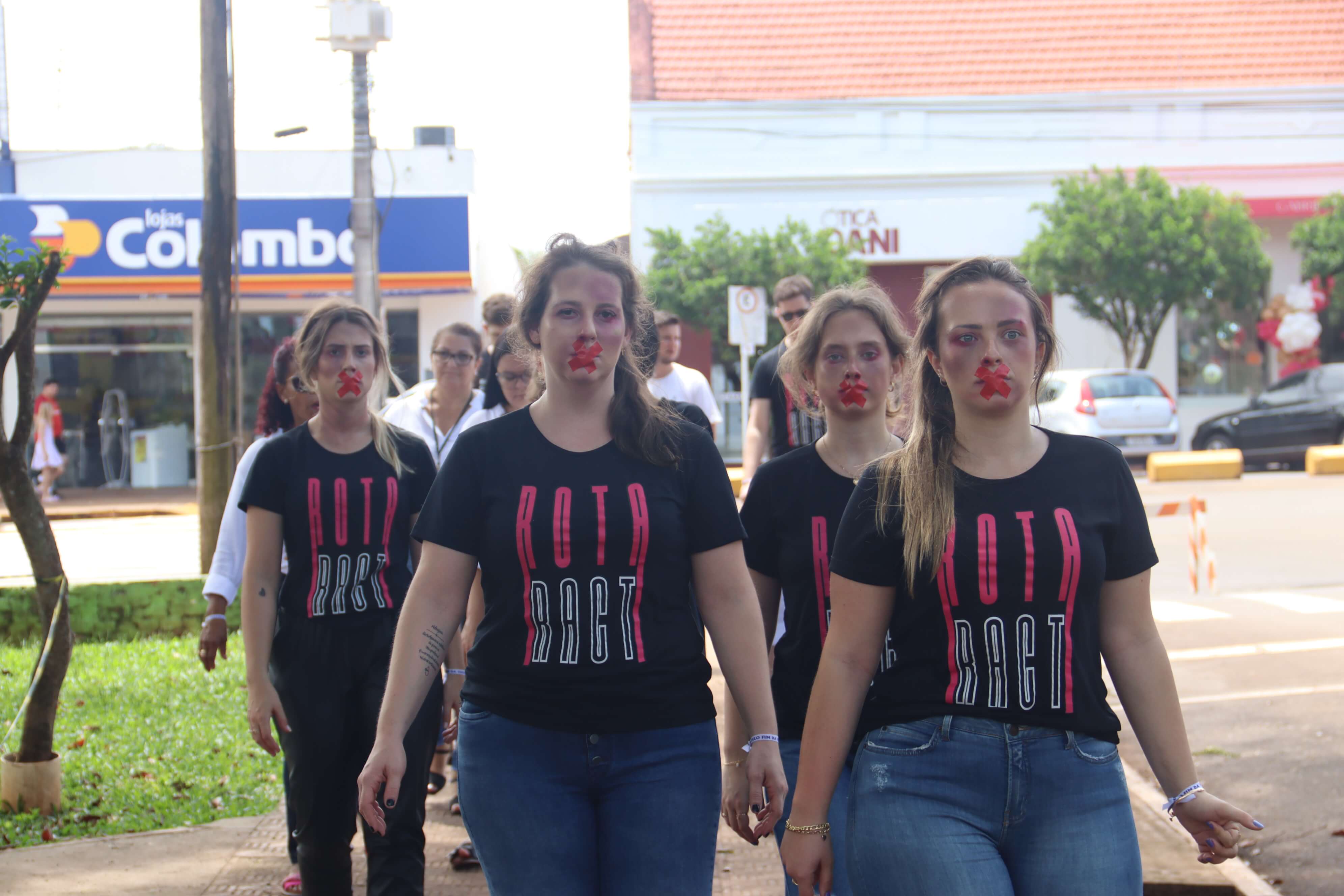 Na manhã de sábado, dia 3, a Secretaria de Políticas da Mulher em parceria com o Rotaract Club de Três de Maio, realizou uma campanha nas ruas e comércios do município conscientizando os munícipes sobre a violência contra a mulher.