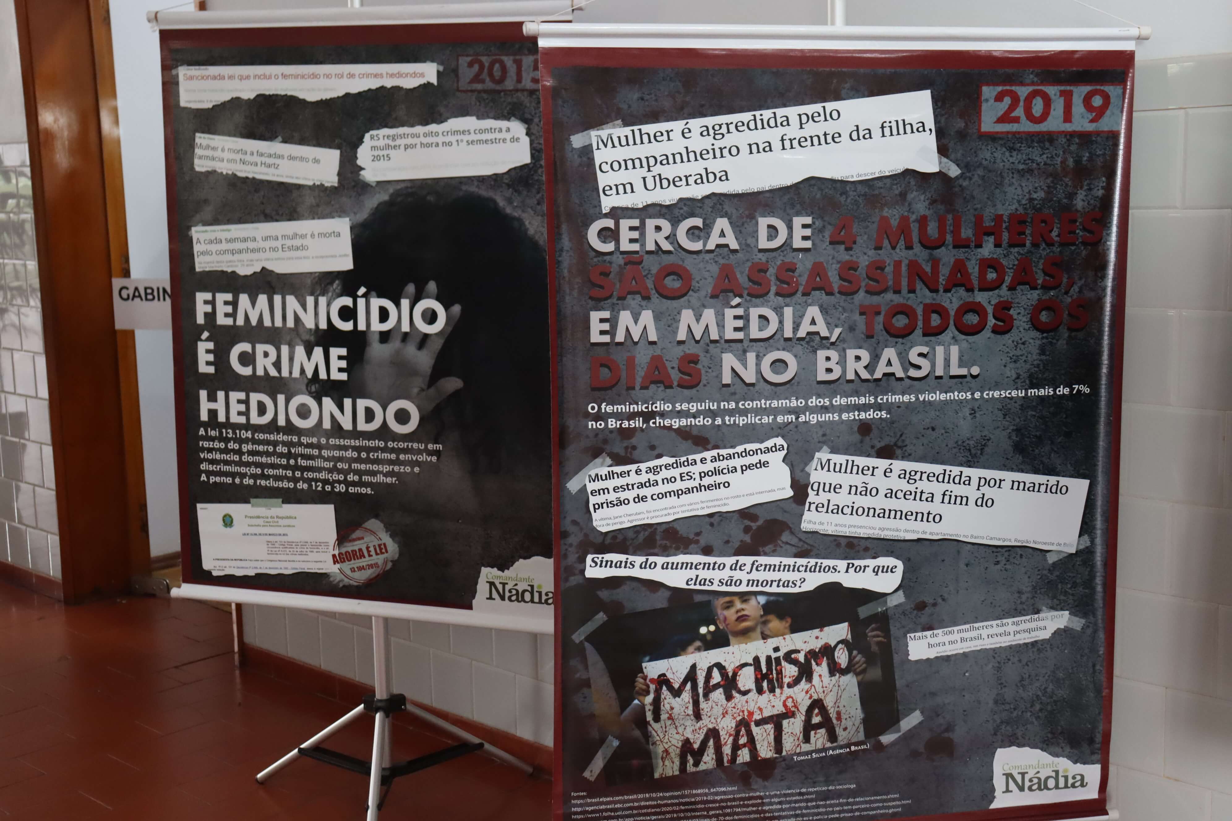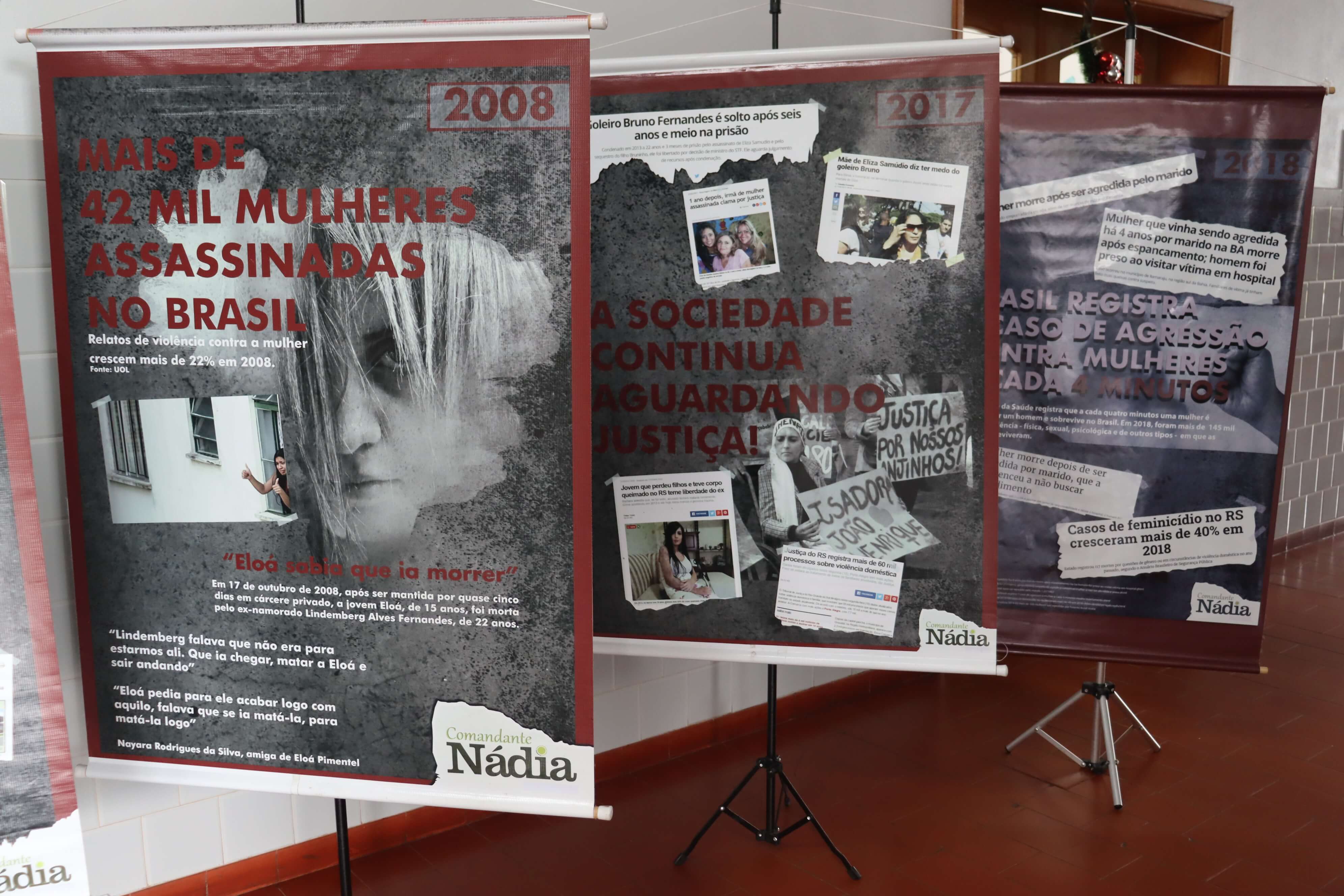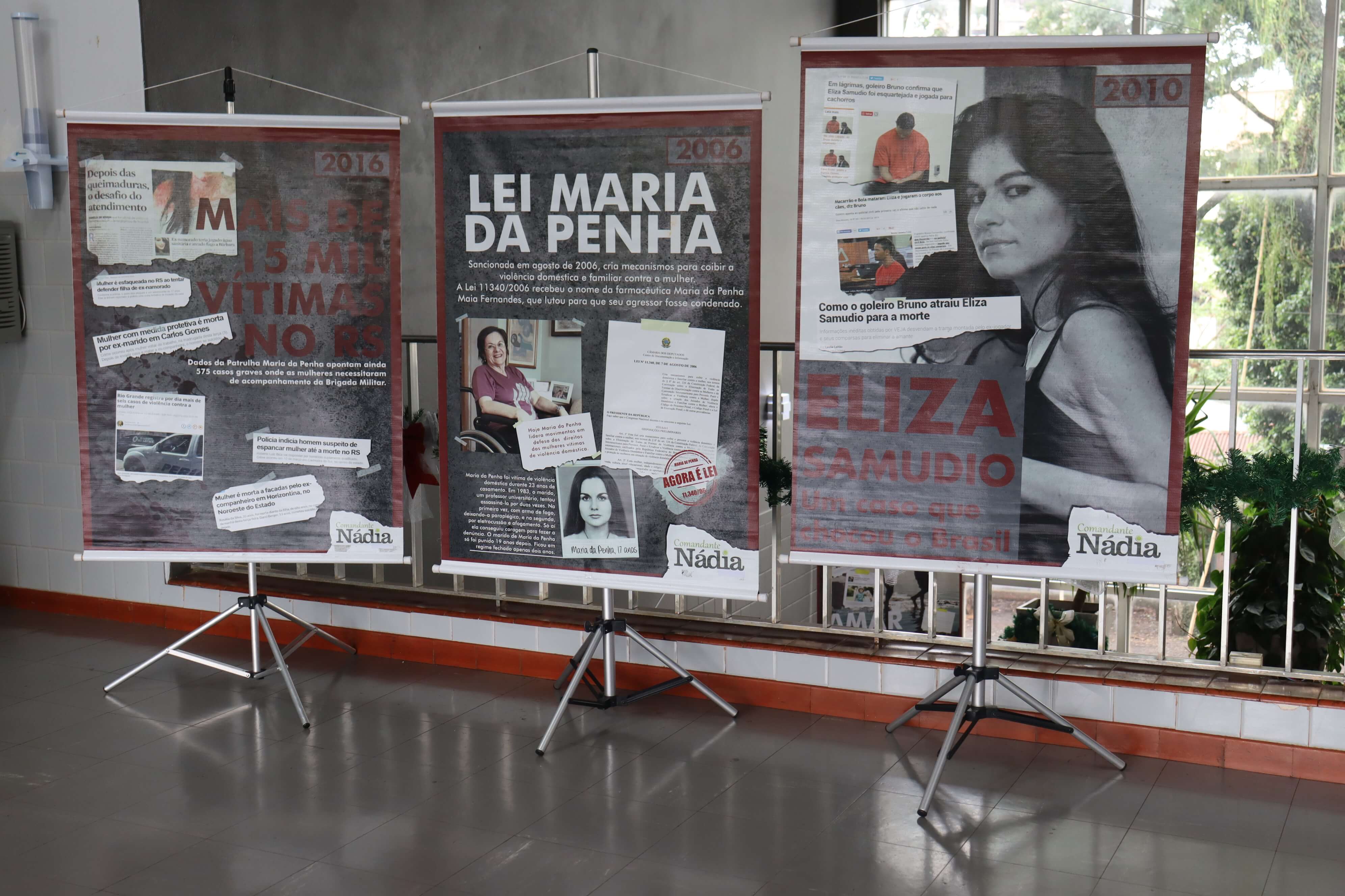 A Exposição traz matérias referentes a casos de mulheres que sofreram abusos, seja eles psicológicos, físicos entre outros, também trazendo um pouco da história da luta das mulheres, como o caso da Maria da Penha.