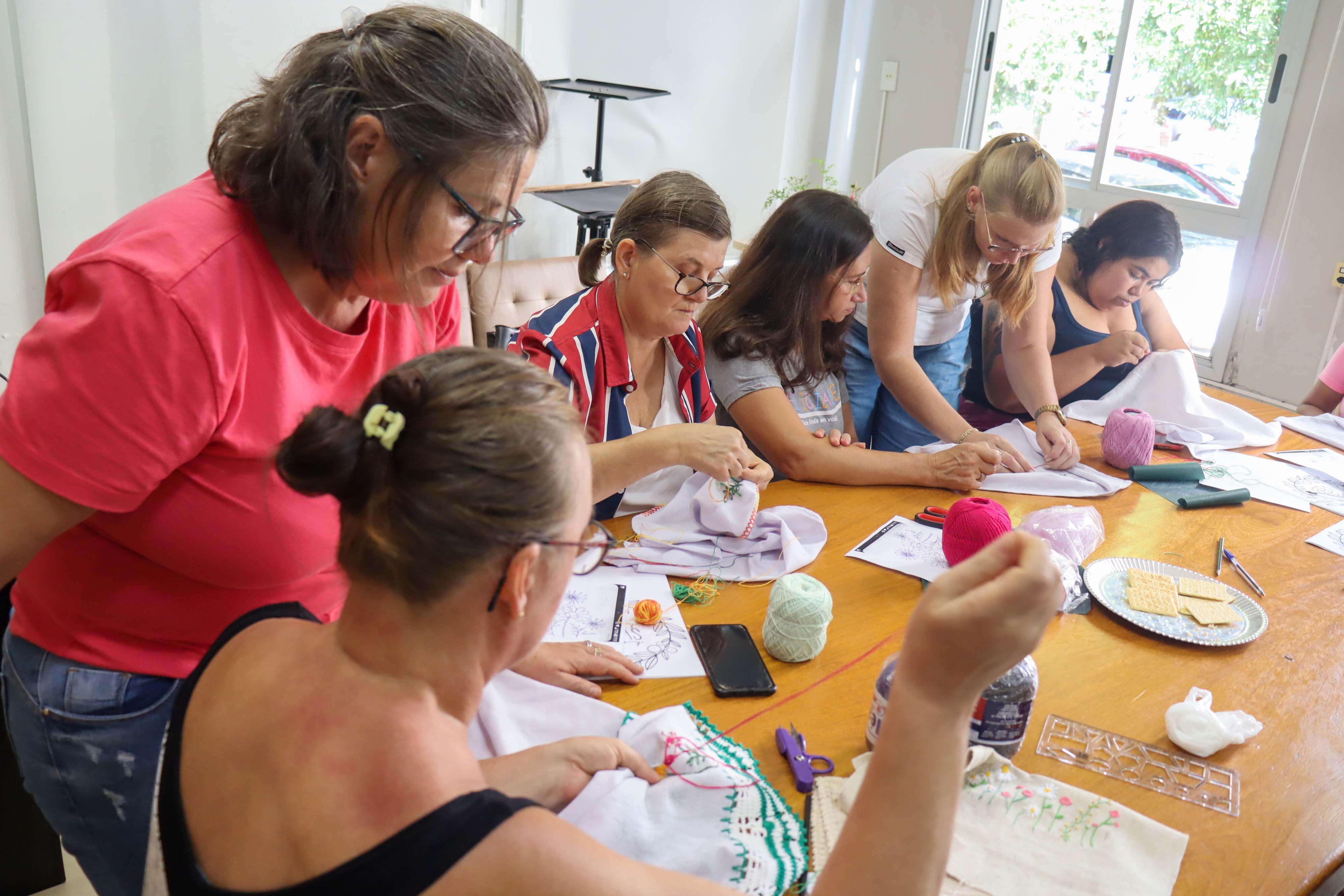 As oficinas acontecem nos dias 20 e 21 de março e contam com 15 munícipes inscritas por turma que realizam atividades de decoupage em vidro, crochê em pano de prato e bordado.