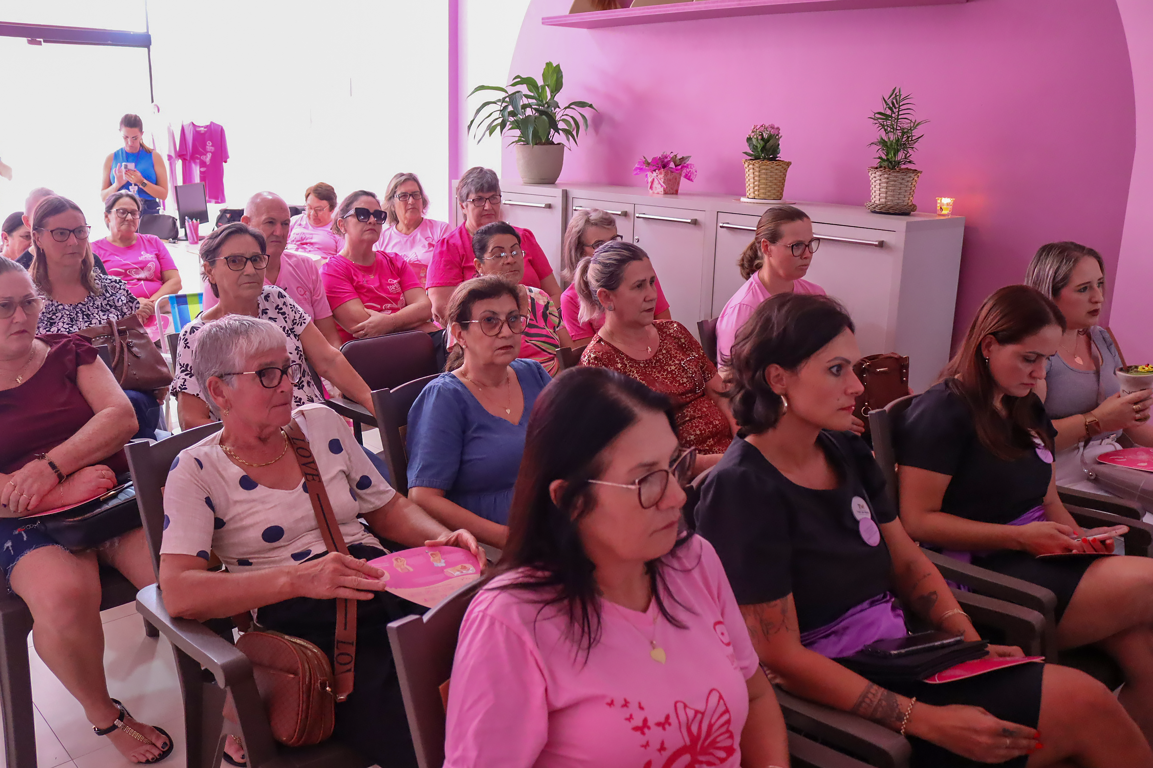 Na tarde de ontem, 25 de março, o Encontro do Laço Rosa reuniu mulheres que enfrentam ou já superaram o câncer de mama na sede do Instituto Amigas da Mama (IAMAMA), em Três de Maio. O evento integrou a 28ª Semana da Mulher Tres-maiense, promovida pelo Governo Municipal, por meio da Secretaria de Políticas da Mulher e Direitos Humanos.