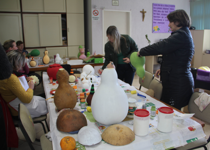 As aulas ocorreram no Espaço Margarida Alves e foram ministradas pela instrutora do Senar, Marisa Reckziegel dos Santos, que repassou técnicas de pintura e colagem em porongos.
