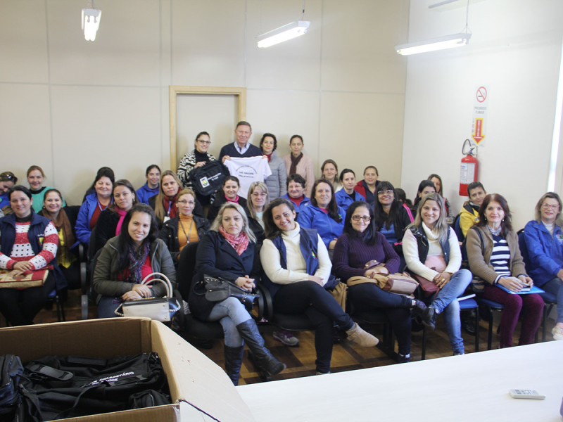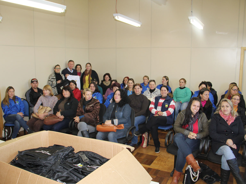 Na manhã de quarta-feira, 24, a Secretaria Municipal de Saúde fez a entrega de mochilas e camisetas identificadas aos agentes comunitários de saúde do Município. Estiveram presentes o prefeito municipal, Olívio José Casali; a secretária de Saúde, Jacira Taborda; a secretária de Saúde adjunta, Daiana Perin; a coordenadora da Atenção Básica, Luciana Correa de Moura e os agentes comunitários de saúde.