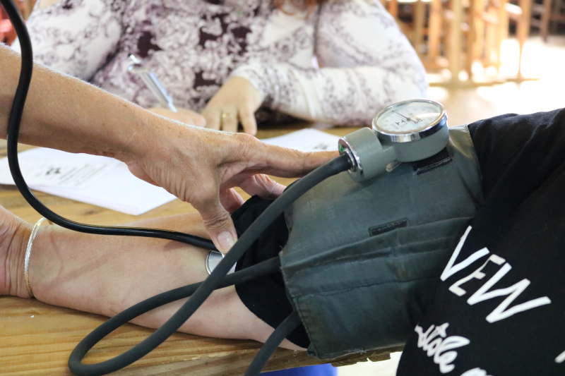Durante o encontro, foi oferecido serviço de verificação de pressão arterial, presentes tiveram um bate papo sobre o trabalho desenvolvido na ESF, dúvidas referentes à vacinação da gripe e também realizaram atividades de artesanato.