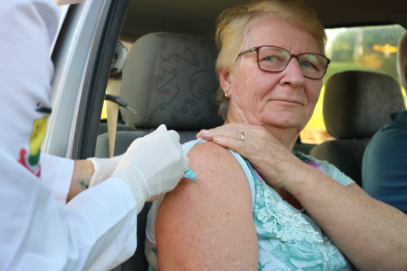 De acordo com a Coordenadora de Atenção Básica, Glaci Gauger, “a modalidade de vacinação extra muro está sendo excelente, a equipe está animada com o retorno e conscientização da população”.