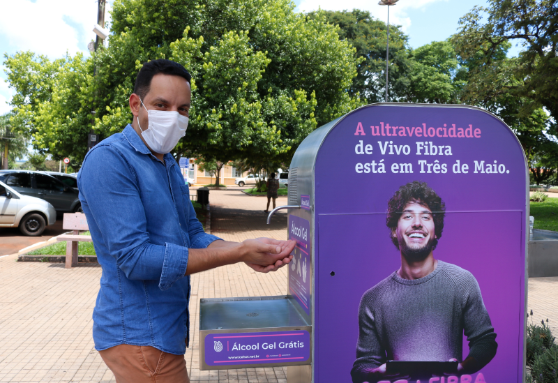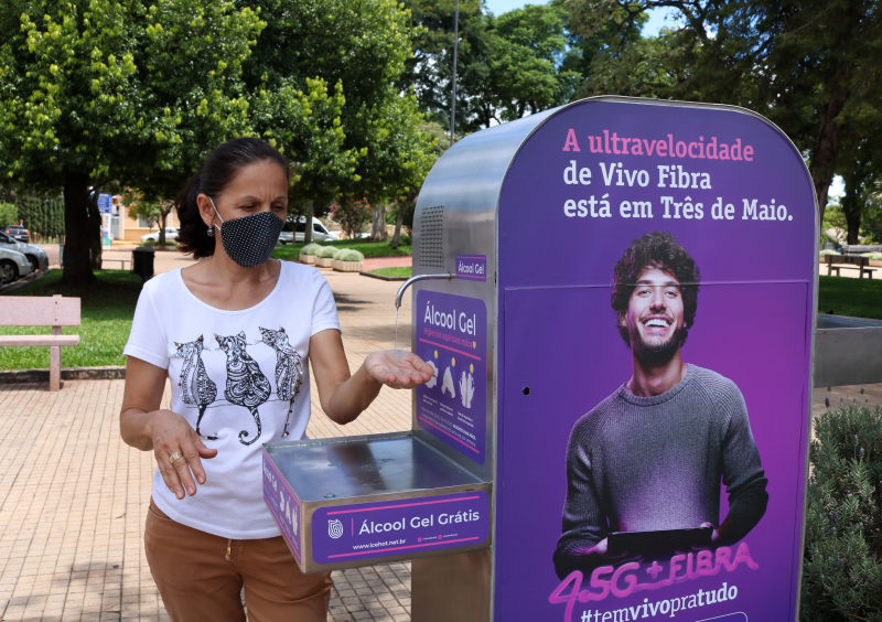 O equipamento, que é produzido pela startup Icehot e instalado em parceria com a Vivo, permite ao usuário fazer a higienização das mãos de maneira rápida e segura.