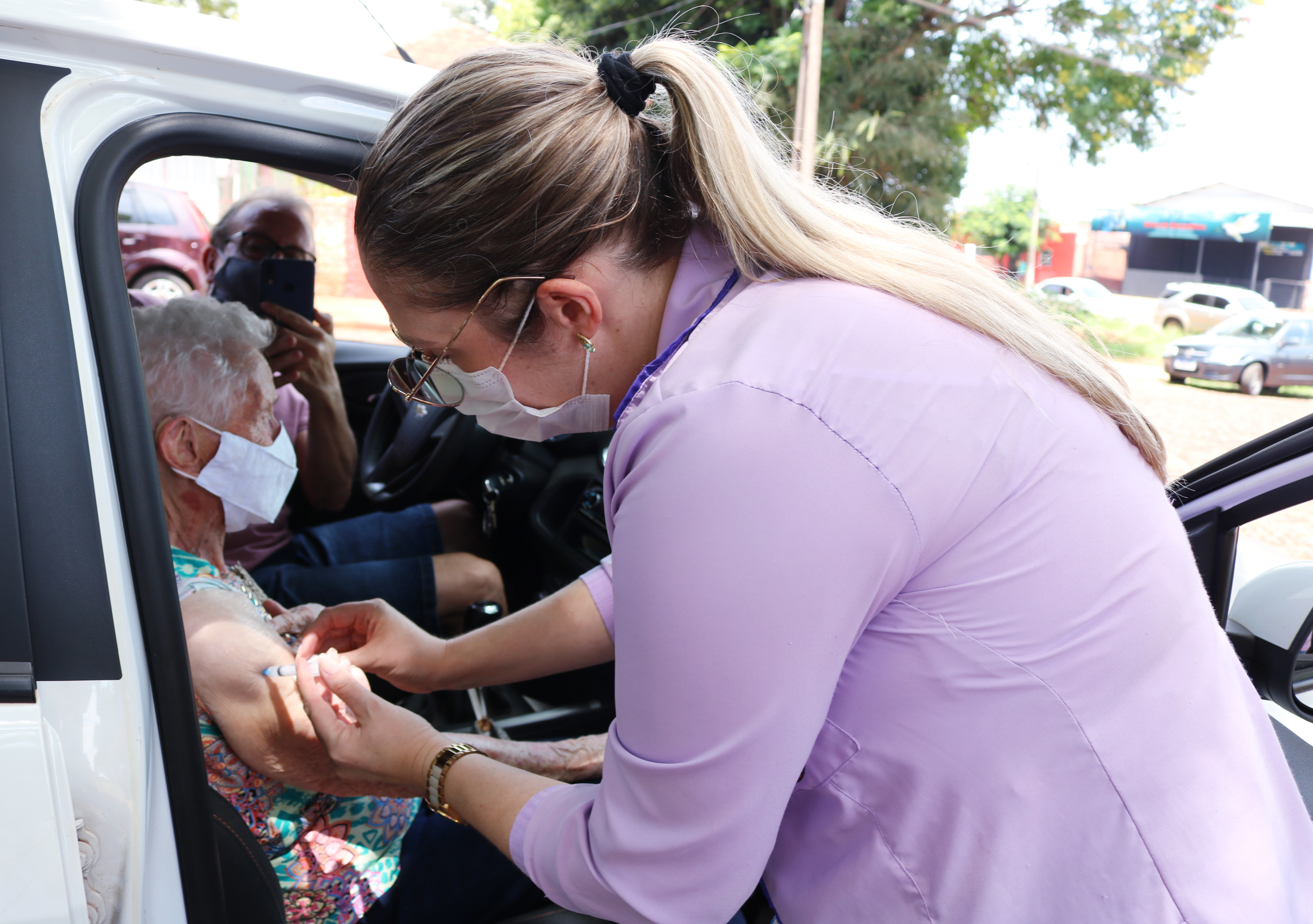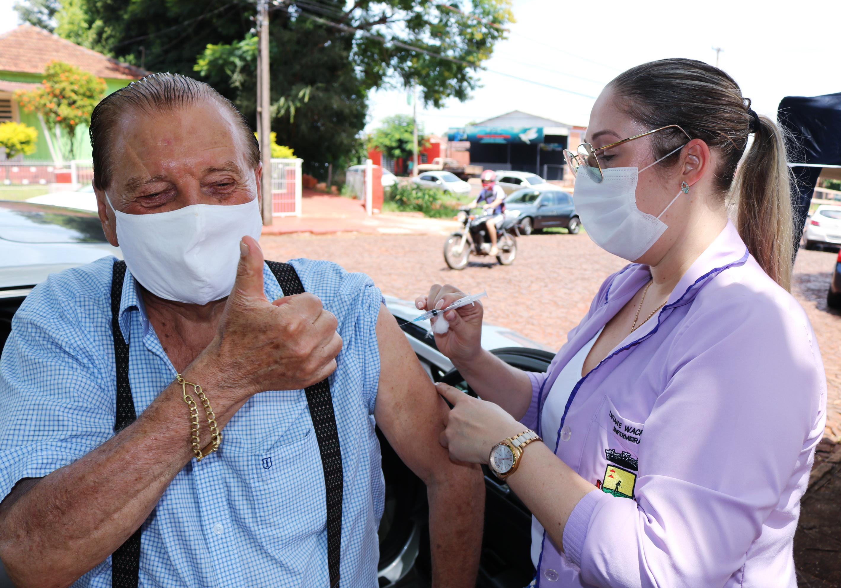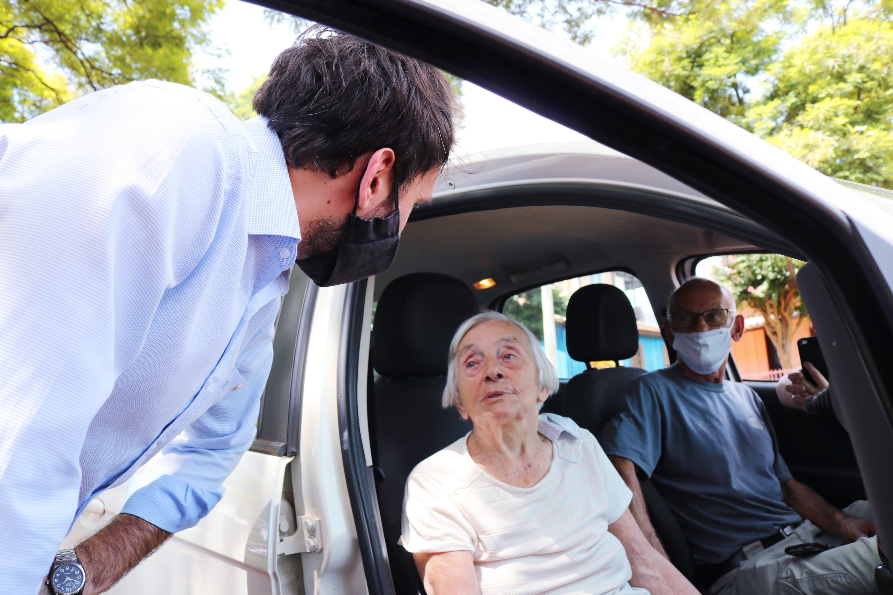 Na oportunidade, Corso conversou com os idosos que estavam nos veículos e presenciou a imunização da senhora Olga Beckert, de 102 anos, que destacou que ficou muito feliz de receber uma dose da vacina.