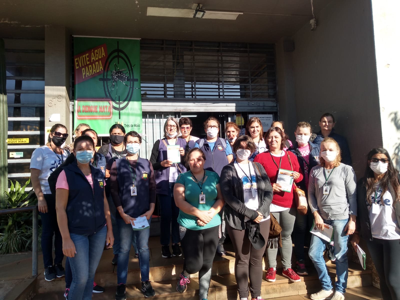 A secretária de Saúde, Jacira Taborda, informa que os agentes de Combate a Endemias e os Agentes Comunitários de Saúde estão realizando ações de conscientização sobre a dengue nos bairros do município, a fim de alertar a comunidade sobre a situação crítica em que Três de Maio se encontra.