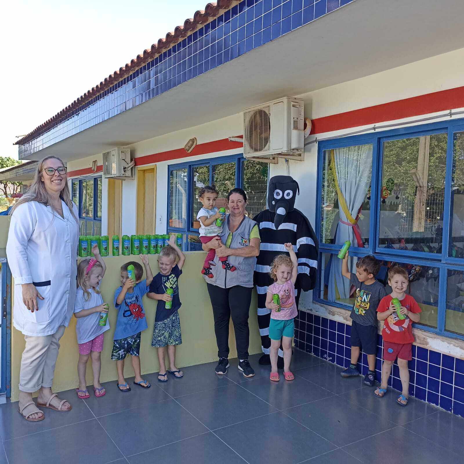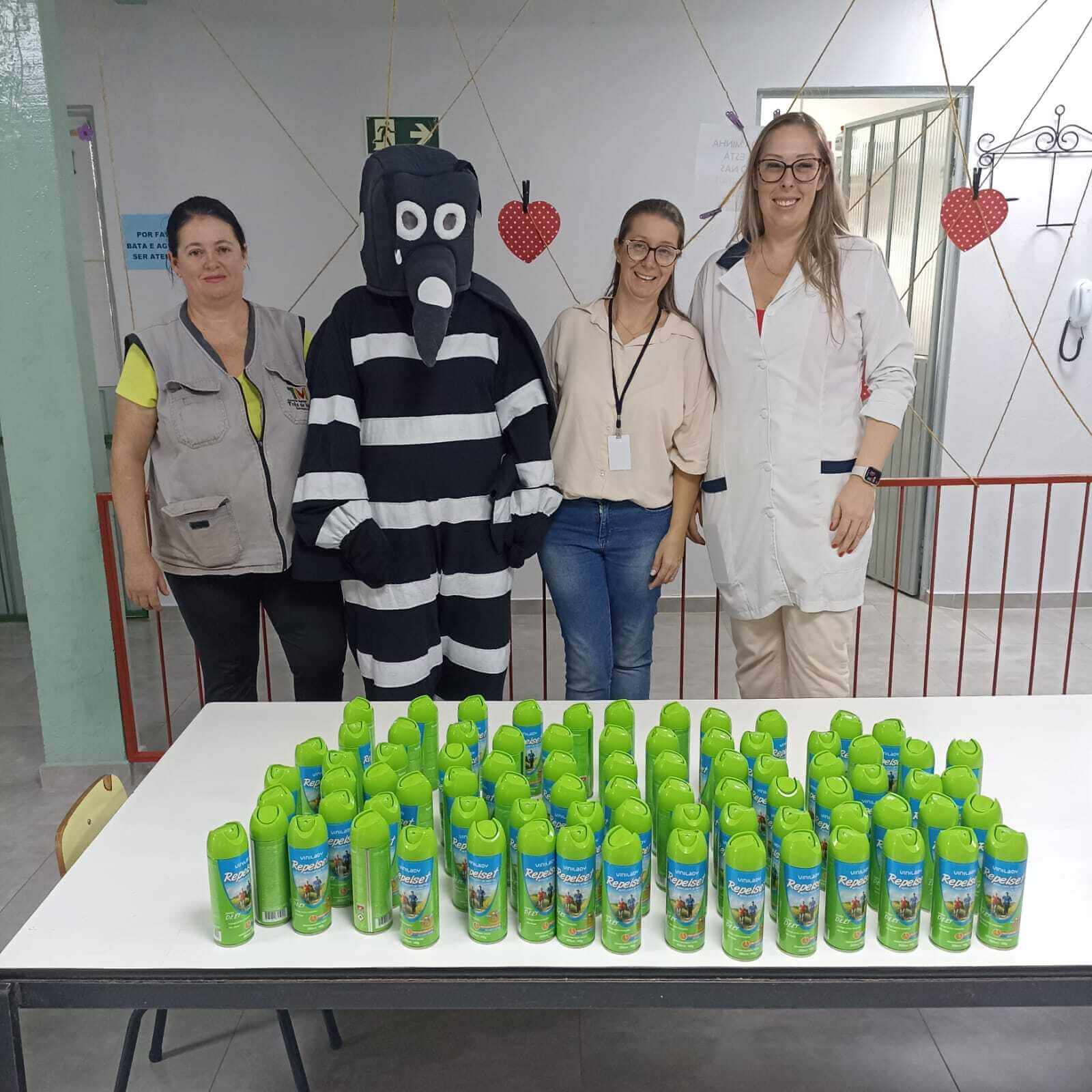 As equipes estão realizando a distribuição de repelentes para o cuidado das crianças