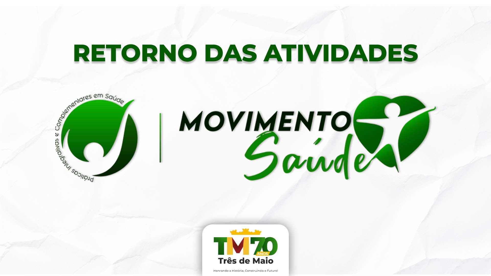 O Governo Municipal de Três de Maio, por meio da Secretaria de Saúde, informa que as atividades dos grupos que integram o programa Movimento Saúde serão retomadas em fevereiro.