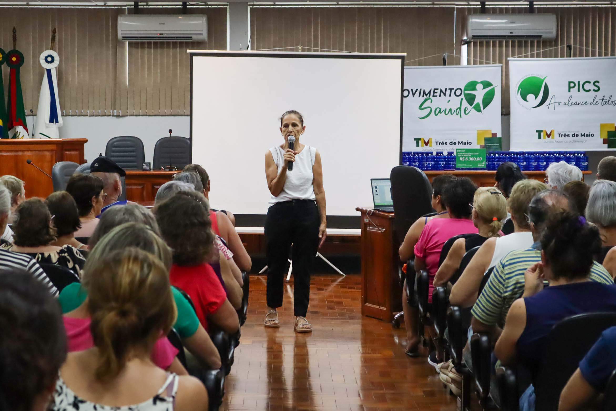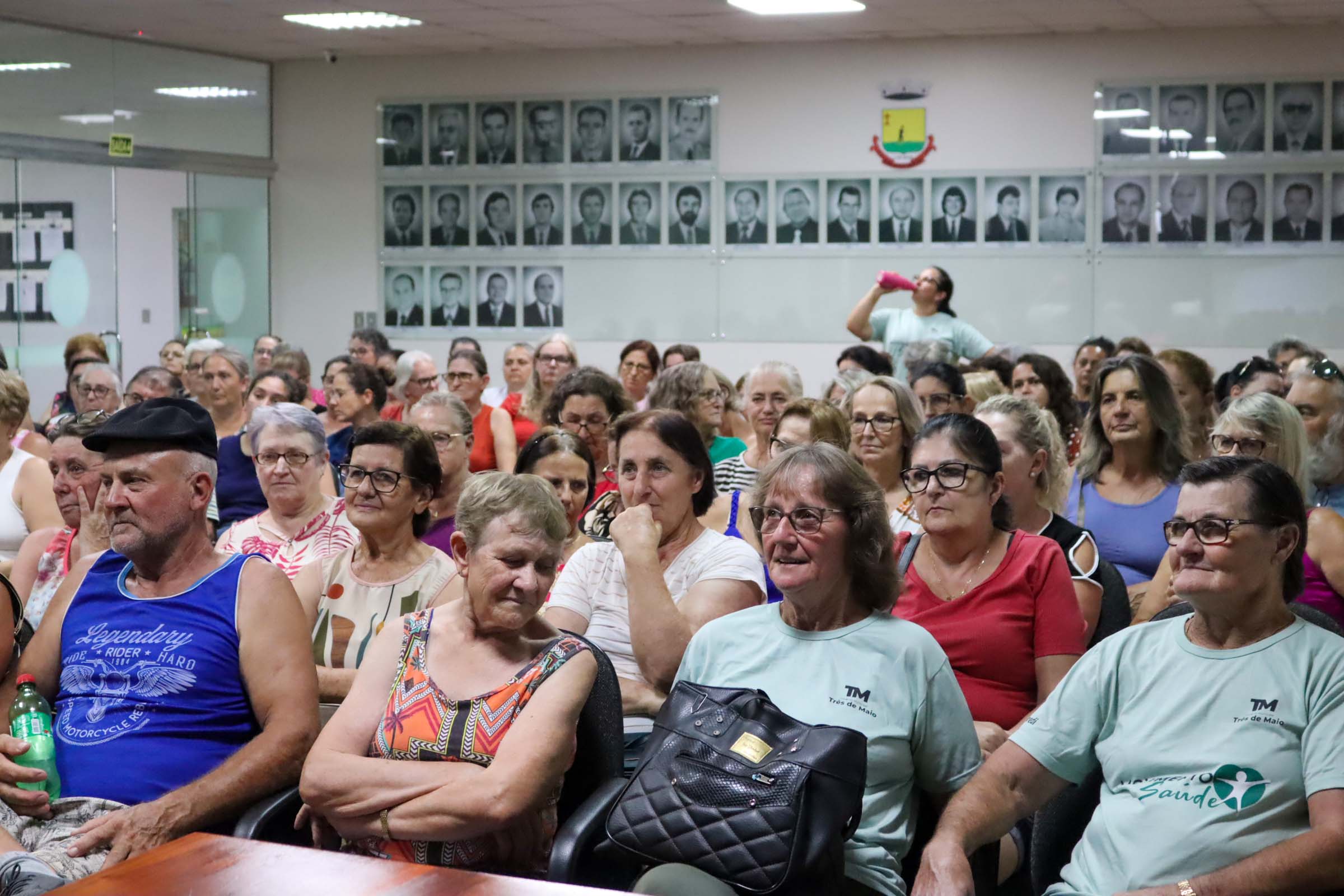 Na tarde de ontem, 12 de fevereiro, o programa Movimento Saúde deu início à retomada de suas atividades, recebendo participantes das comunidades na Câmara Municipal de Vereadores. O evento, que marca o retorno das ações voltadas à promoção da saúde e bem-estar, contou com a presença de aproximadamente 120 pessoas.